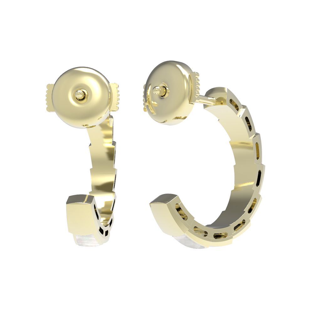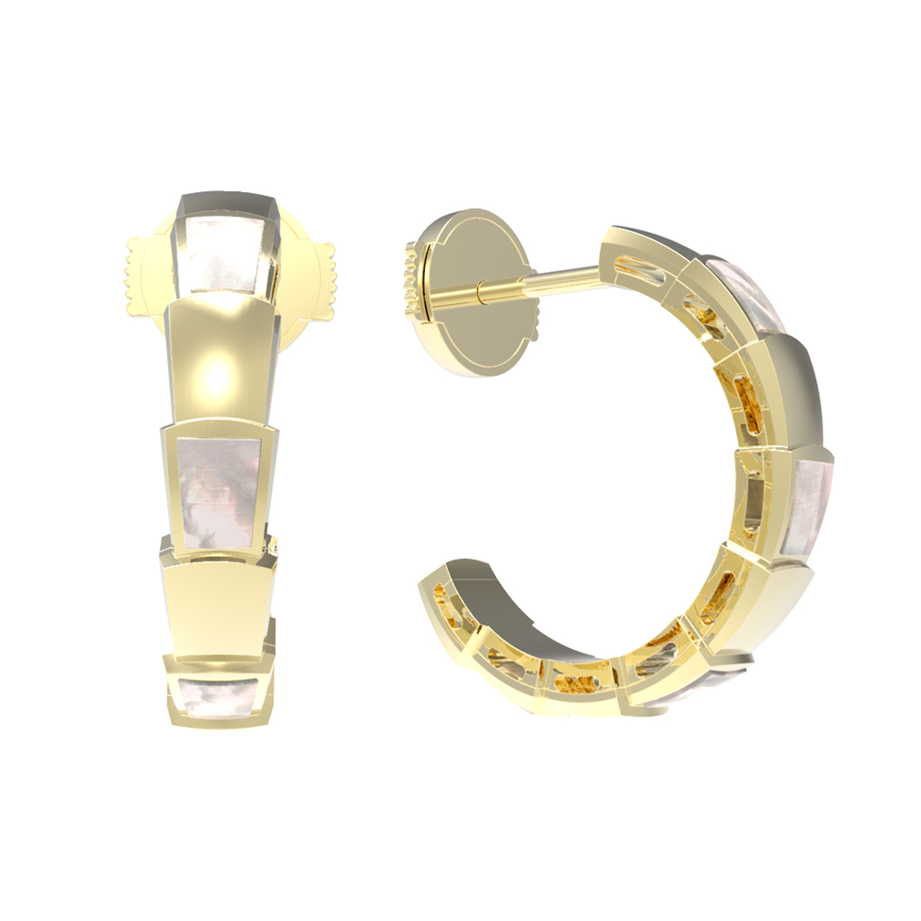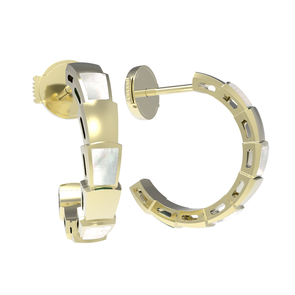 Центральным акцентом композиции выступает натуральный перламутр, вставки из которого гармонично чередуются с золотыми звеньями. Мягкие переливы перламутра добавляют образу глубины и нежности, создавая роскошный контраст с яркостью лимонного металла. Эти серьги — унисекс-аксессуар, который одинаково эффектно смотрится как для женщин, так и для мужчин, позволяя создавать смелые и стильные образы.