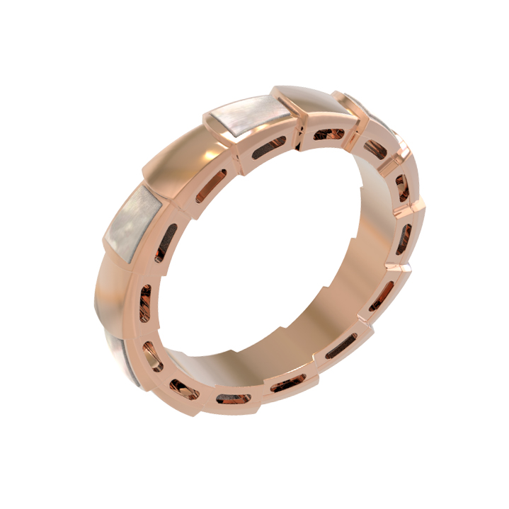 Элегантное кольцо из красного золота 585 пробы — это воплощение изысканности и смелого дизайна. Модель входит в коллекцию De Luxe — Серпенти, вдохновленную грацией и загадочностью скорпионов. Мастера ювелирного дела создали украшение, которое идеально сочетает в себе благородный металл и природную красоту вставок из нежного перламутра. Чередование гладких золотых элементов и перламутровых сегментов создает динамичный и запоминающийся образ, который подчеркнет ваш безупречный вкус.