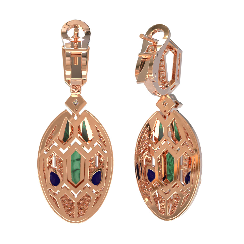 Серьги из золота c бриллиантами, сапфиром и малахитом