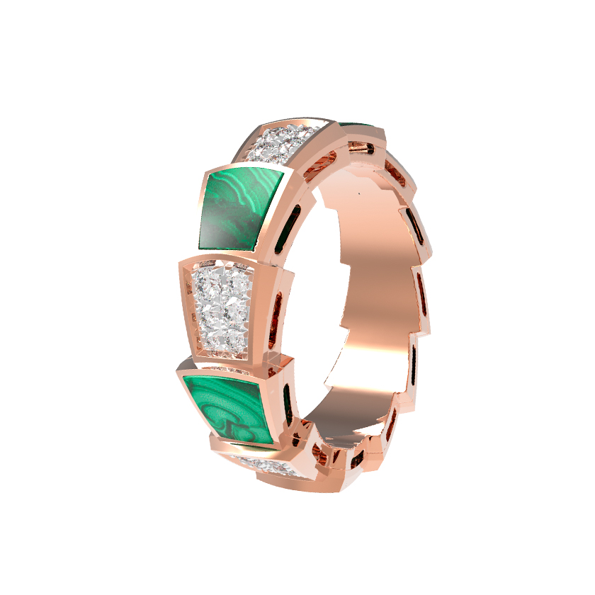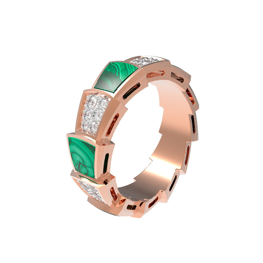 Кольцо из красного золота 585 пробы из коллекции De Luxe — Серпенти станет воплощением смелого стиля и утонченной роскоши. Дизайн украшения, вдохновленный грацией скорпиона, подчеркивает статус владельца, предлагая уникальное сочетание благородного металла и контрастных вставок. Основу композиции составляют 42 вставки: глубокий зеленый малахит придает изделию природную выразительность, а искрящиеся белые бриллианты круглой огранки добавляют сияния и завершенности образу.