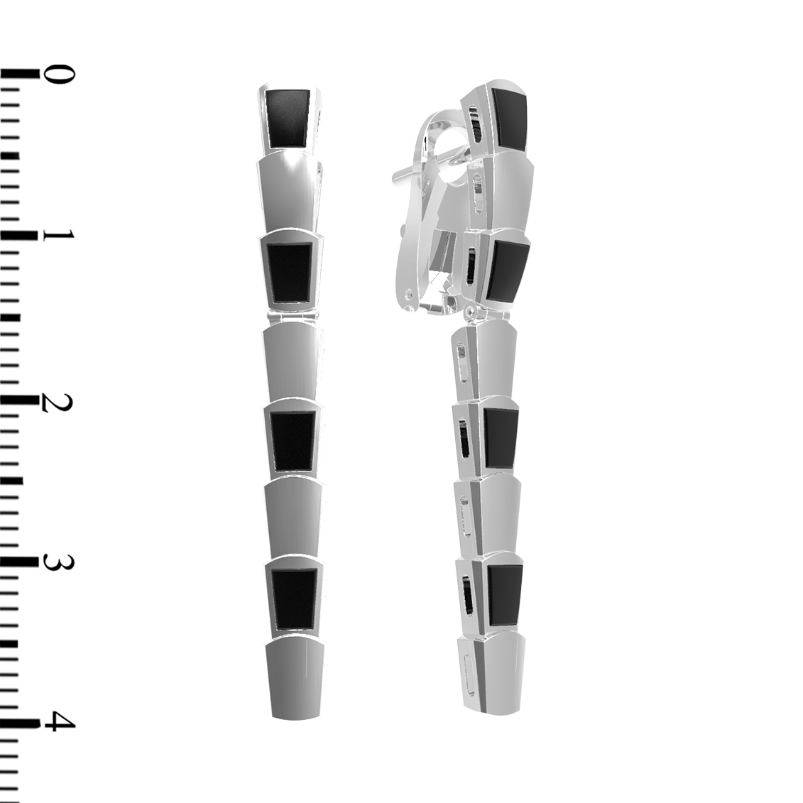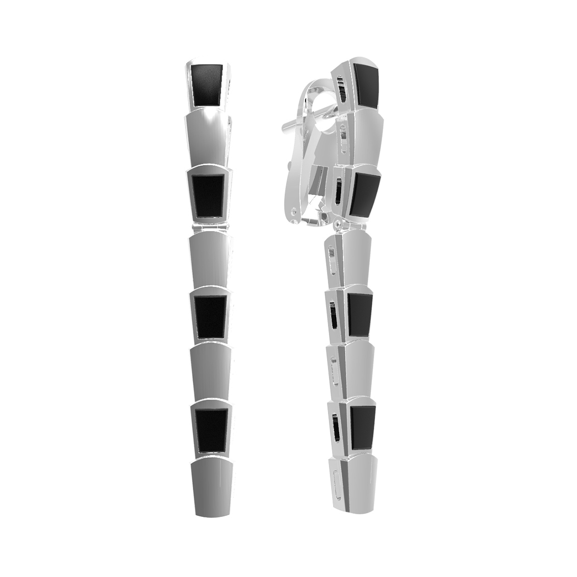 В дизайне использовано 8 вставок оникса, которые расположены каскадом, подчеркивая динамику формы изделия. Эти серьги созданы для тех, кто ценит лаконичность и статусность в аксессуарах. Благодаря универсальному стилю, модель подходит как для женщин, так и для мужчин, позволяя создавать смелые и современные образы. Длинная форма визуально вытягивает силуэт, добавляя образу утонченности.