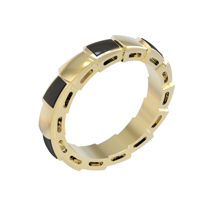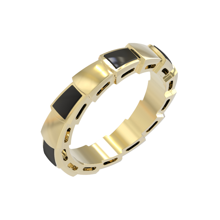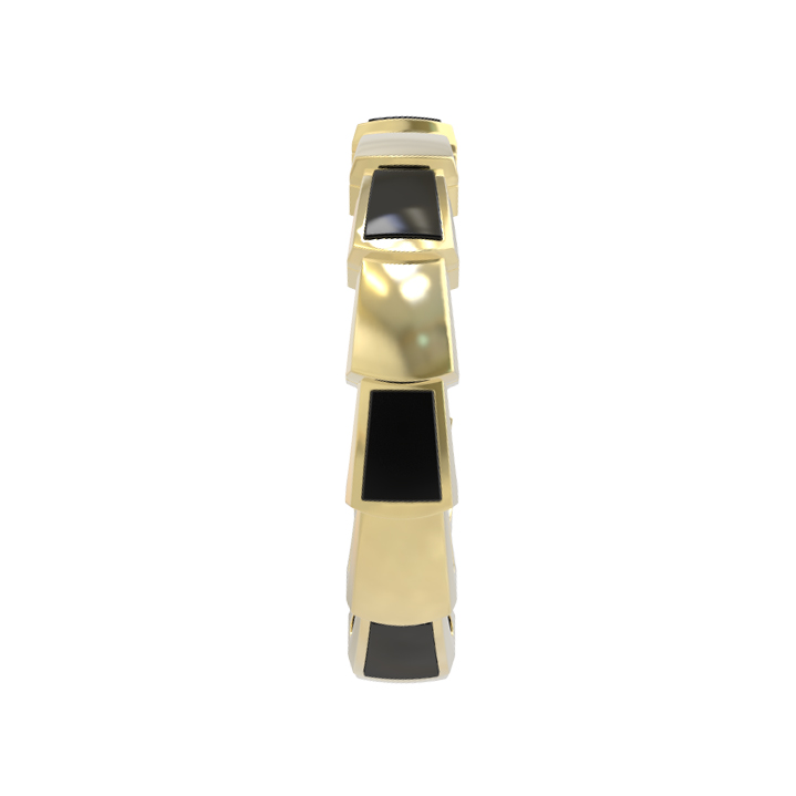 Элегантное кольцо из лимонного золота 585 пробы — это воплощение ювелирного искусства, вдохновленное мистической эстетикой скорпионов. Украшение входит в коллекцию De Luxe — Серпенти, отличающуюся своим узнаваемым и смелым дизайном, который подчеркивает статус и безупречный вкус владельца. Ювелиры воплотили в этой модели игру контрастов: теплое сияние лимонного золота гармонично сочетается с глубоким черным цветом семи вставок натурального оникса.