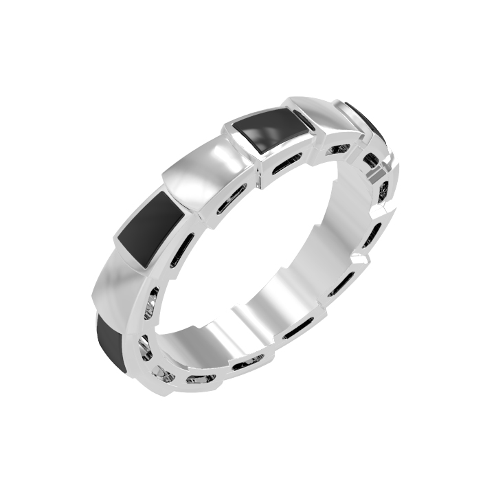 Кольцо из белого золота 585 пробы из коллекции De Luxe — Серпенти станет ярким акцентом вашего образа. Дизайн украшения, вдохновленный грацией скорпионов, мастерски воплощен в металле холодного оттенка. Строгие геометрические формы и контрастное сочетание материалов придают изделию особенную выразительность. В качестве декора использованы 7 вставок из натурального оникса глубокого черного цвета, которые гармонично дополняют сияние драгоценного металла.