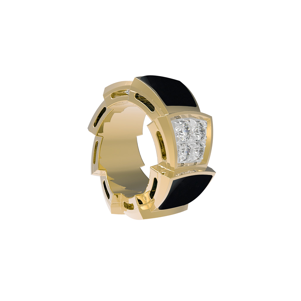 Особую выразительность изделию придает контрастное сочетание материалов. Глубокий черный оникс гармонично дополнен сиянием 20 круглых бриллиантов, которые эффектно акцентируют внимание на благородном лимонном цвете металла. Качественная обработка вставок белого и черного цвета создает неповторимую игру света, делая подвеску центральным элементом вашего образа.