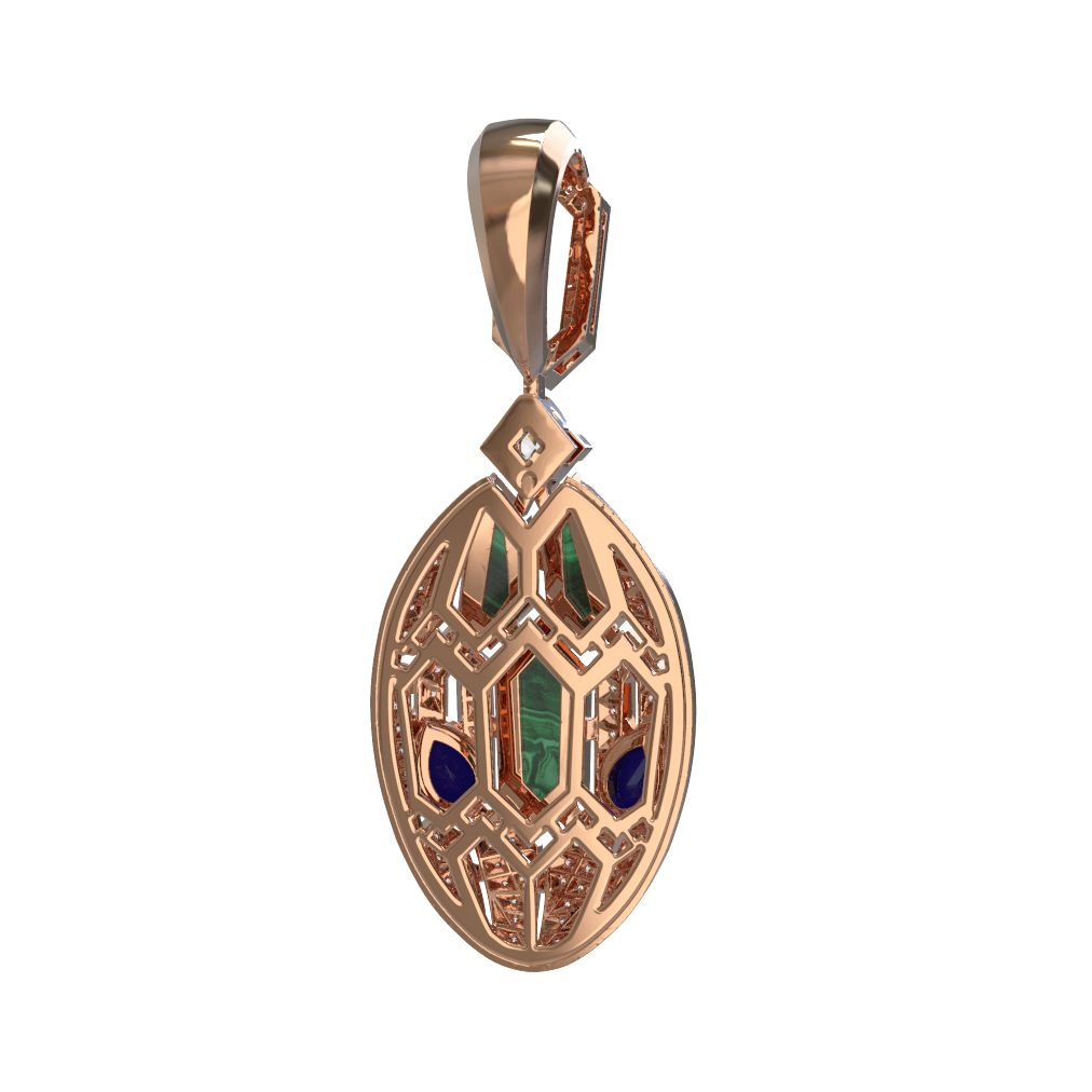 Подвеска из золота c бриллиантами, сапфиром и малахитом