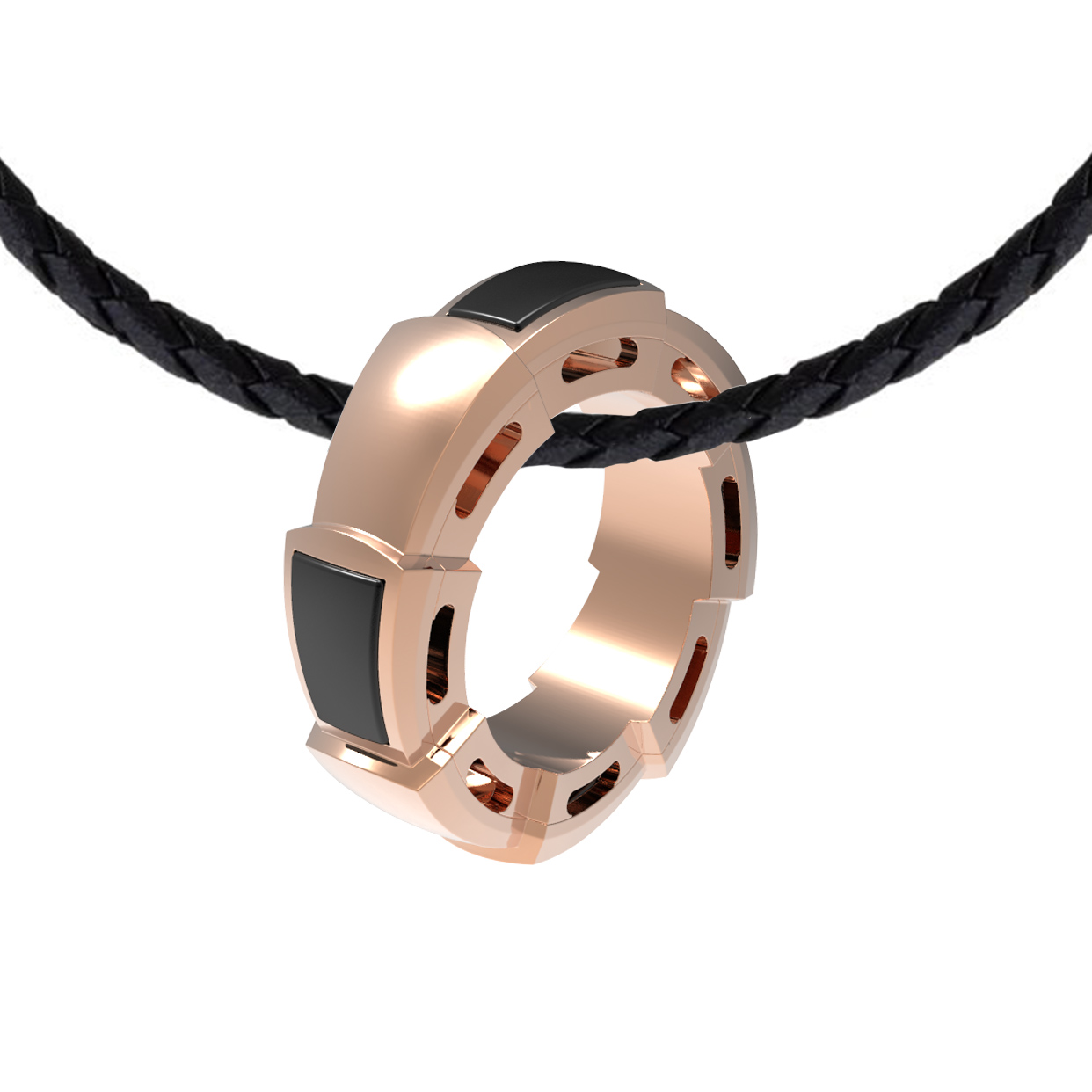 Конструкция выполнена из качественного красного золота, чей теплый оттенок эффектно контрастирует с глубоким цветом вставок. Декор включает 4 вставки из оникса черного цвета, которые придают изделию строгость и глубину. Лаконичные линии и продуманная форма делают эту подвеску универсальным аксессуаром, который одинаково гармонично дополнит образ как для женщин, так и для мужчин.