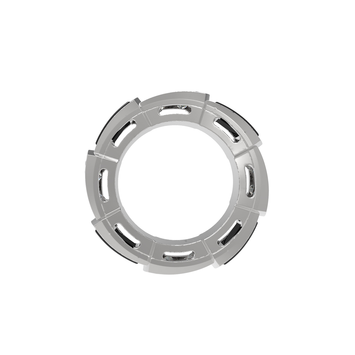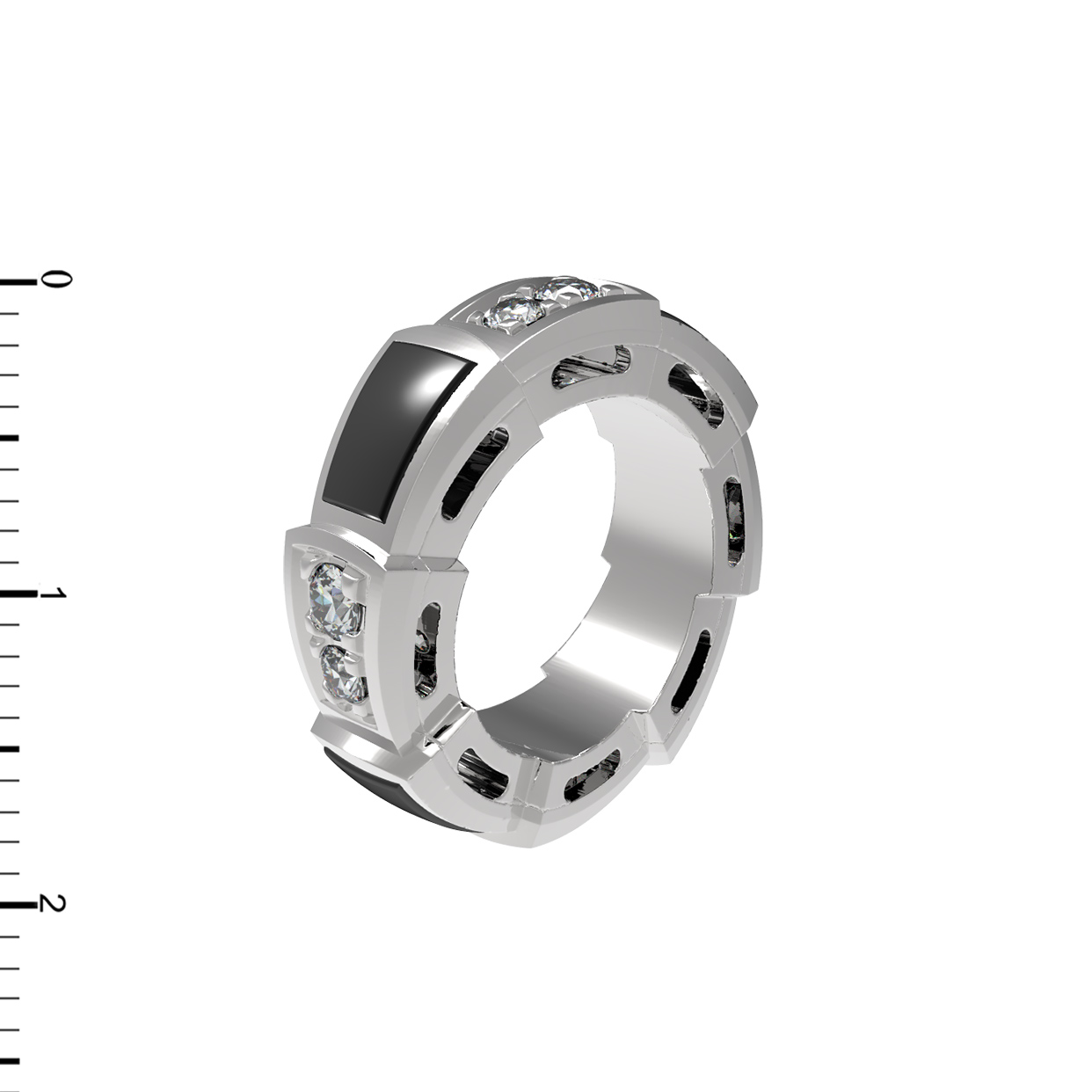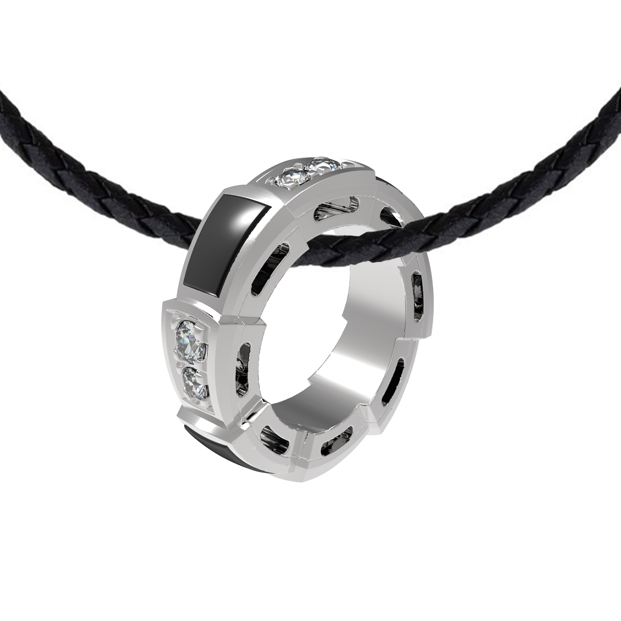 Декор украшения дополняют 12 круглых бриллиантов, которые добавляют изделию роскошное свечение при каждом движении. Лаконичная цветовая гамма — белый металл в сочетании с белыми бриллиантами и черным ониксом — делает это украшение универсальным дополнением к любому образу, будь то строгий деловой костюм или вечерний наряд. Это изделие одинаково гармонично смотрится как на женщинах, так и на мужчинах, подчеркивая индивидуальность и уверенность своего владельца.