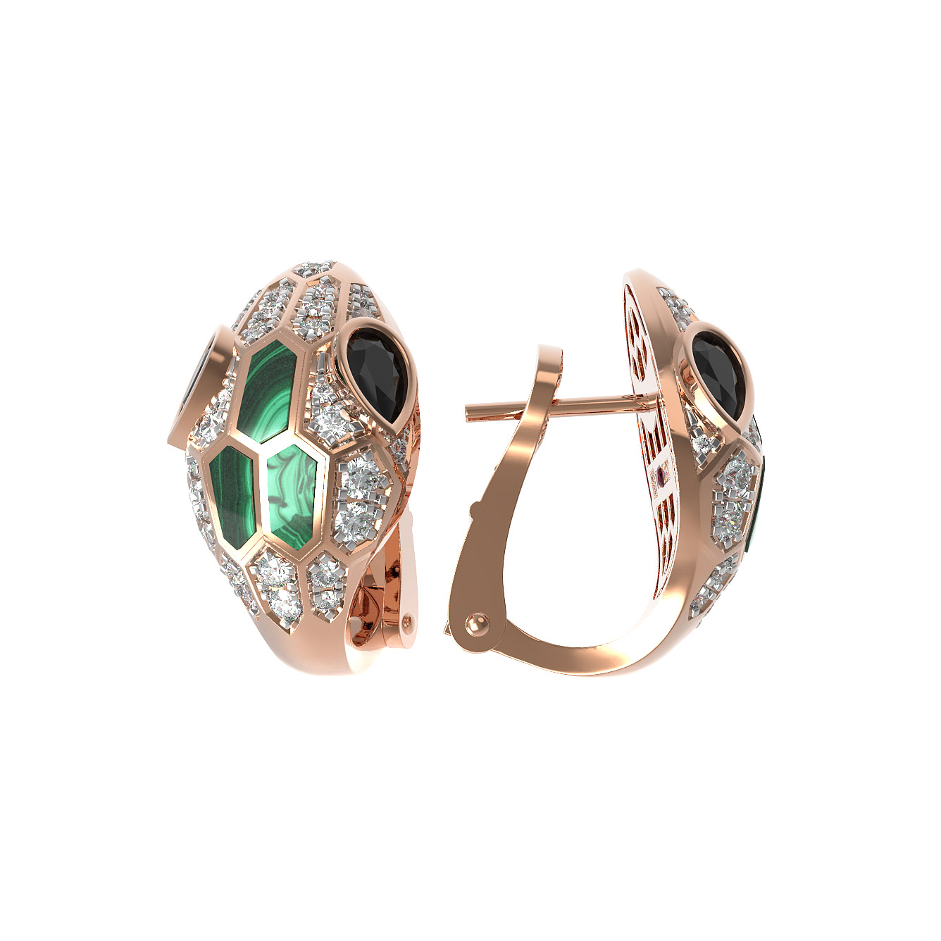 Роскошные серьги из коллекции De Luxe — Серпенти станут ярким акцентом в вашем образе, подчеркивая безупречный вкус и статус. Украшение выполнено из красного золота 585 пробы, чей теплый оттенок идеально гармонирует с выбранной палитрой драгоценных и полудрагоценных вставок. Дизайнерское решение в форме скорпионов придает изделию смелый и притягательный характер, делая его уникальным аксессуаром как для женщин, так и для мужчин, которые ценят ювелирное искусство.