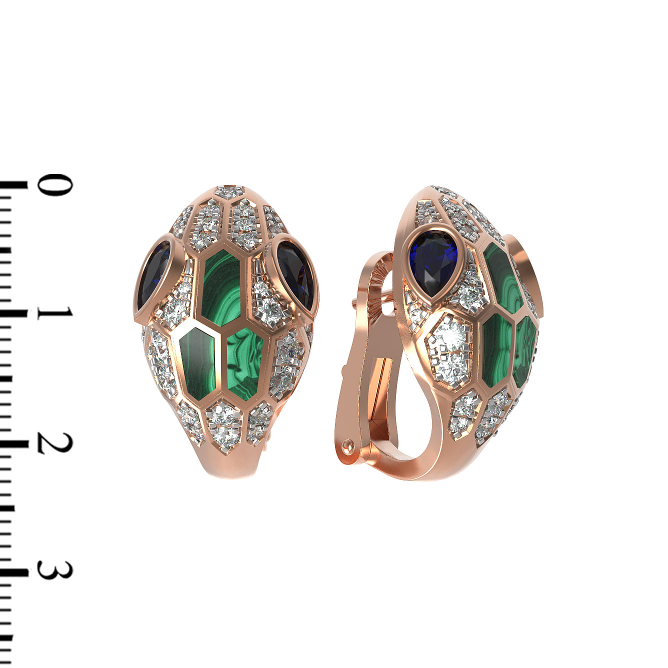 Серьги из золота c бриллиантами, сапфиром и малахитом