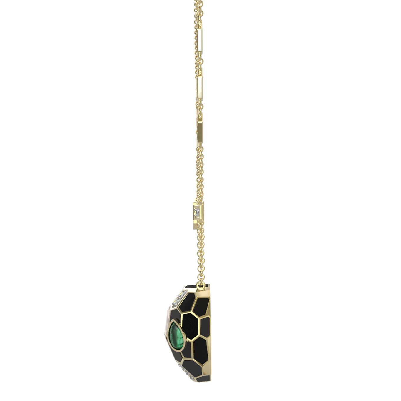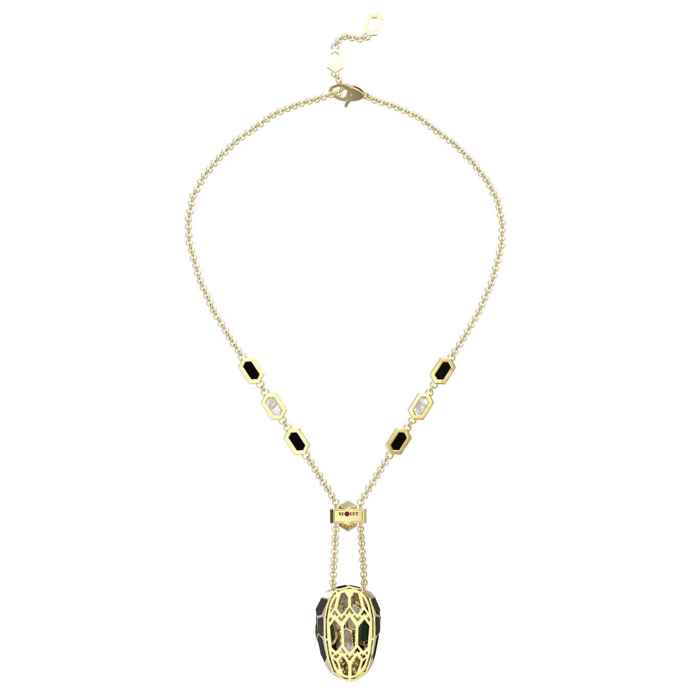 Колье из лимонного золота c бриллиантами, рубином, ониксом, малахитом и перламутром