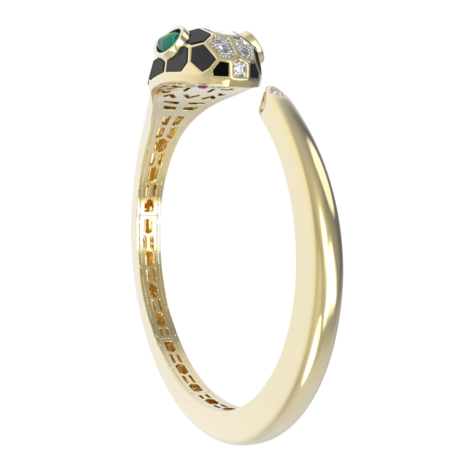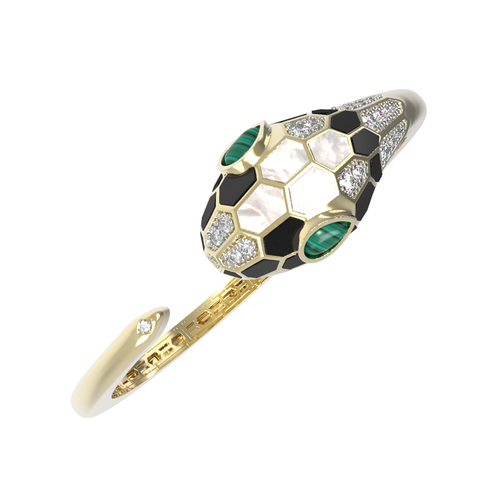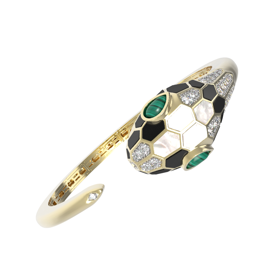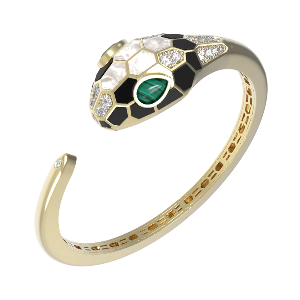 Браслет из лимонного золота c бриллиантами, рубином, ониксом, малахитом и перламутром