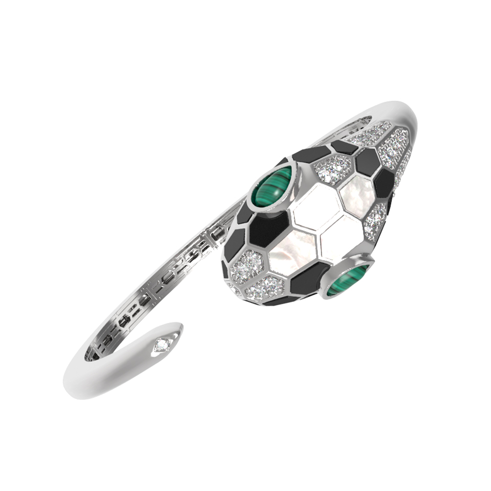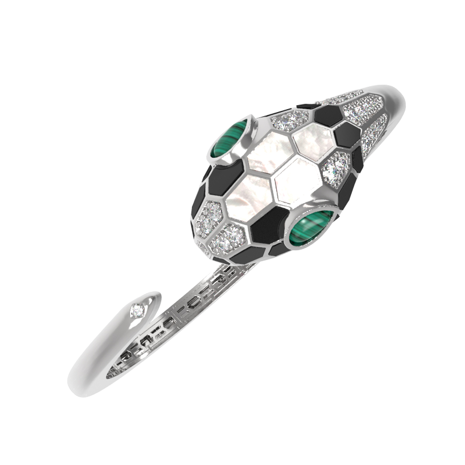 Браслет из белого золота c бриллиантами, рубином, ониксом, малахитом и перламутром