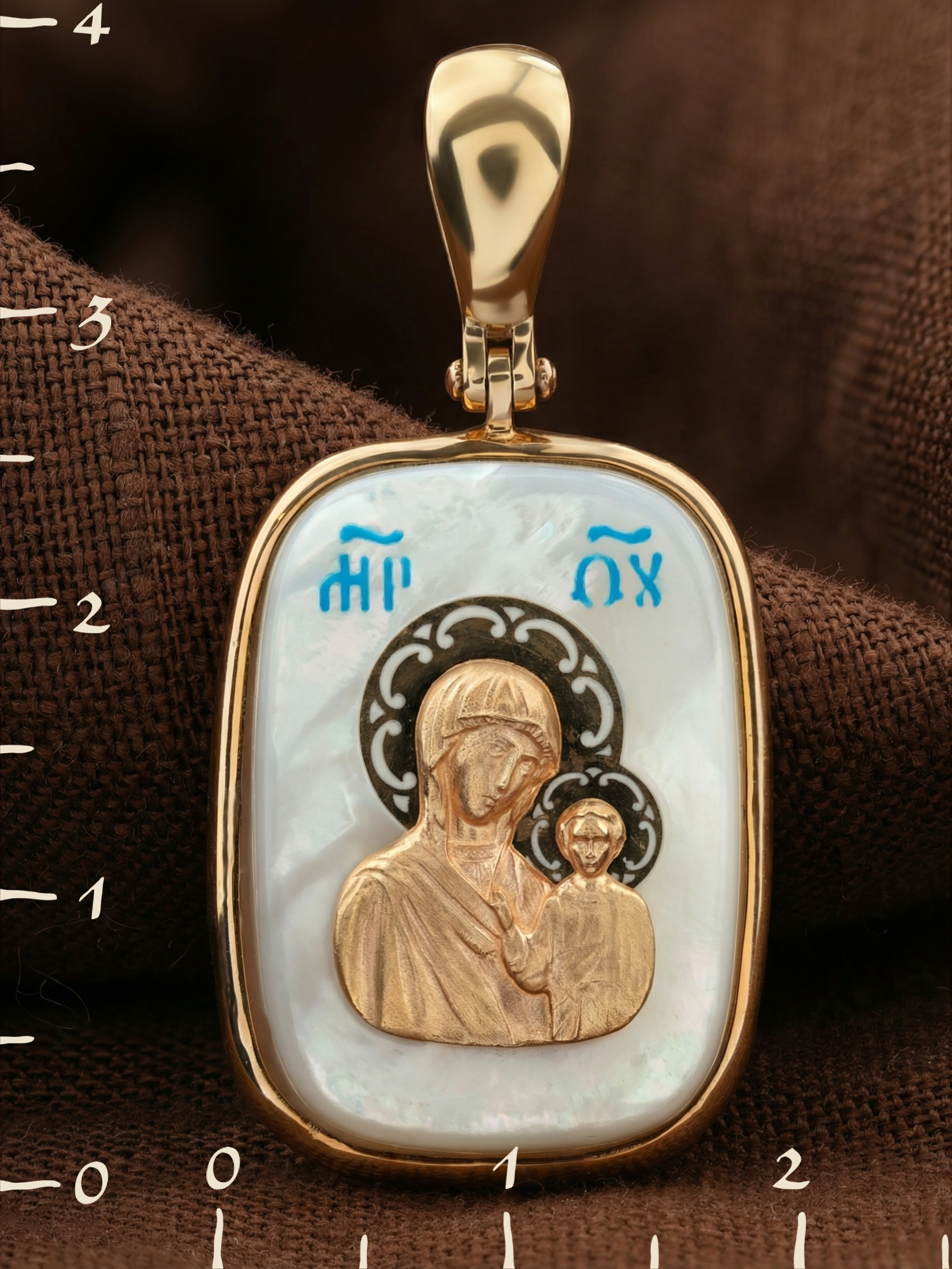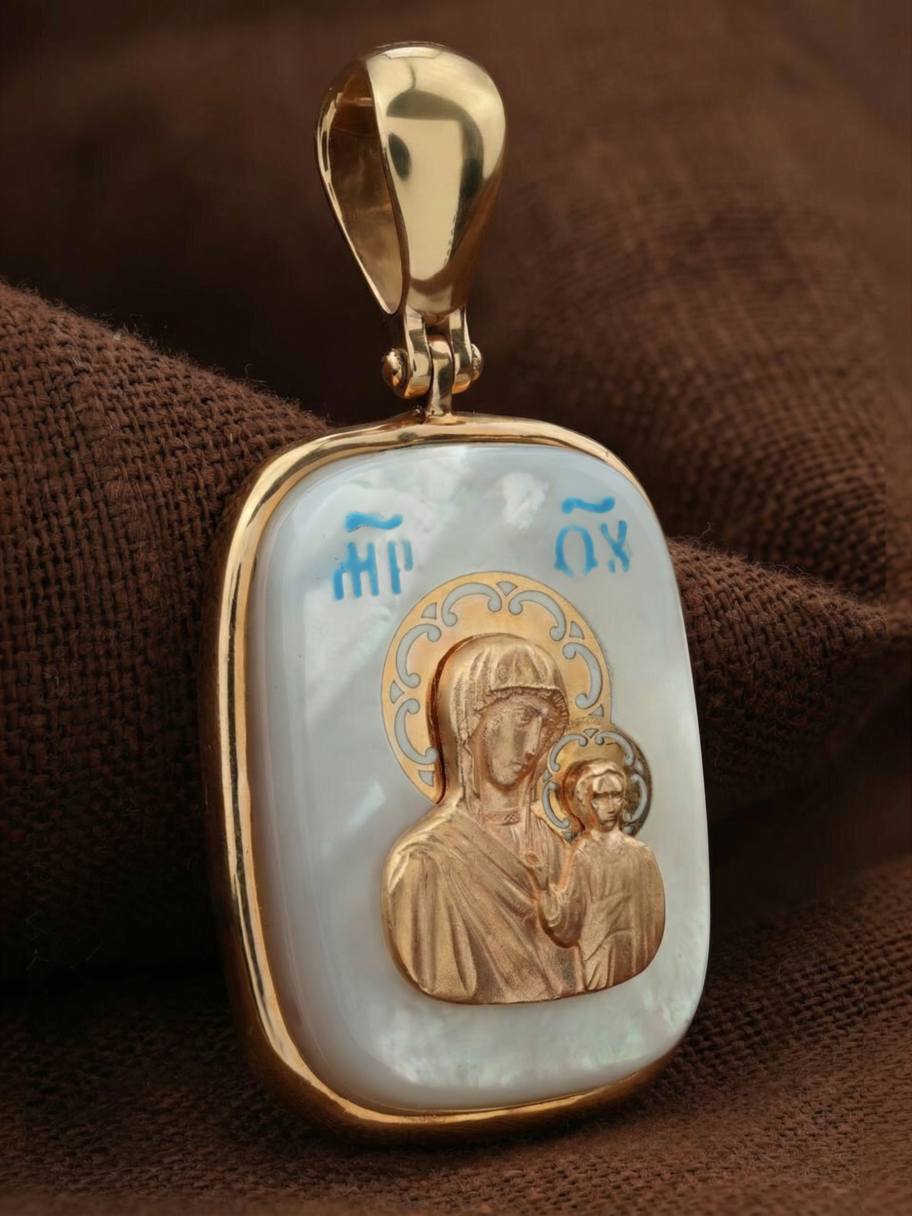 На лицевой стороне образка изображена Казанская икона Божией Матери. Пресвятая Богородица — милосердная заступница, просительница за нас перед Богом. Ее благодатная помощь изливается на нас по молитвам у ее чудотворных икон. Казанская икона явилась в 1579 году в Казани, вскоре после взятия Казанского царства у татар Иоанном Грозным. Этот образ Богородицы не раз сопровождал русский народ в бедствиях. Икона Божией Матери Казанская вдохновляла русских ратников в период Смутного времени при освобождении Москвы от поляков. Перед Казанской иконой в 1709 году, накануне Полтавской победы, император Петр I молился о даровании победы русскому войску. В 1812 году накануне отъезда в действующую армию перед чудотворной иконой Божией Матери молился князь Михаил Кутузов. Несмотря на массированную атеистическую пропаганду и торжество безбожия, воцарившегося в России после октября 1917 года, многие православные именно с молитвами, обращенными к Казанской иконе Божией Матери, связывают и победы в годы Великой Отечественной войны. Не только государственным мужам и дружинам указывала путь икона — по доброй традиции именно этой иконой благословляют на брак молодых родители, длинным списком чудес сопровождается этот образ Богоматери — один из самых любимых на Руси. Существует множество древних списков с этой удивительной иконы.