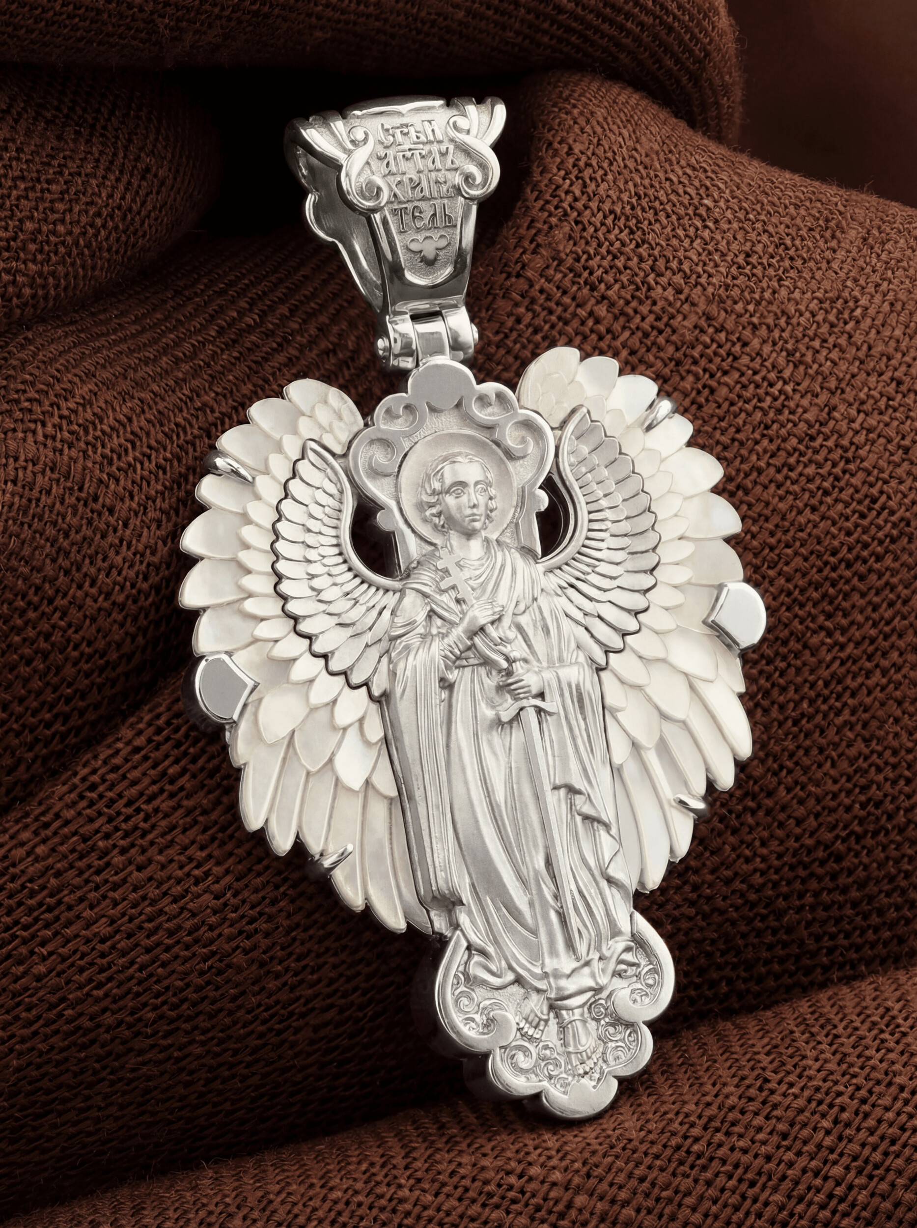 На оборотной стороне образка изображен Святой Ангел-Хранитель в виде прекрасного юноши держащего в правой руке крест, а в левой — мечь. Ангел-Хранитель — это Ангел приставляемый Богом к человеку при крещении для охраны и помощи в добрых делах. Он невидимо находится при человеке на протяжении всей его жизни, если человек сохраняет в себе любовь к Богу и истинную веру перед Ним. Ангел-Xранитель делают для нас все, что служит к истинному нашему благу и спасению. Невидимо пребывая при нас постоянно, он, руководствуя нас ко спасению, наставляет нас на все доброе и полезное, возносит наши молитвы к Богу, охраняют и защищают нас от врагов видимых и невидимых и ходатайствует за нас пред Богом.