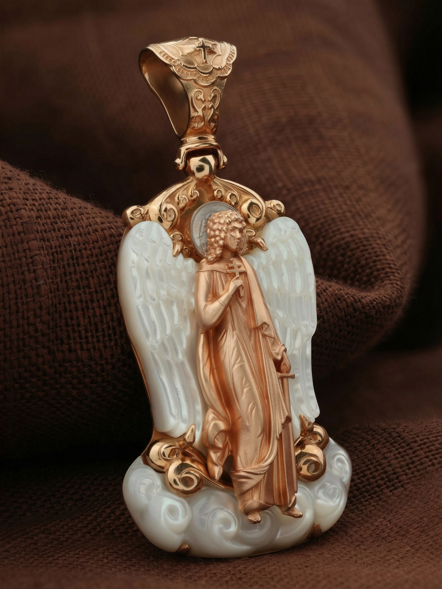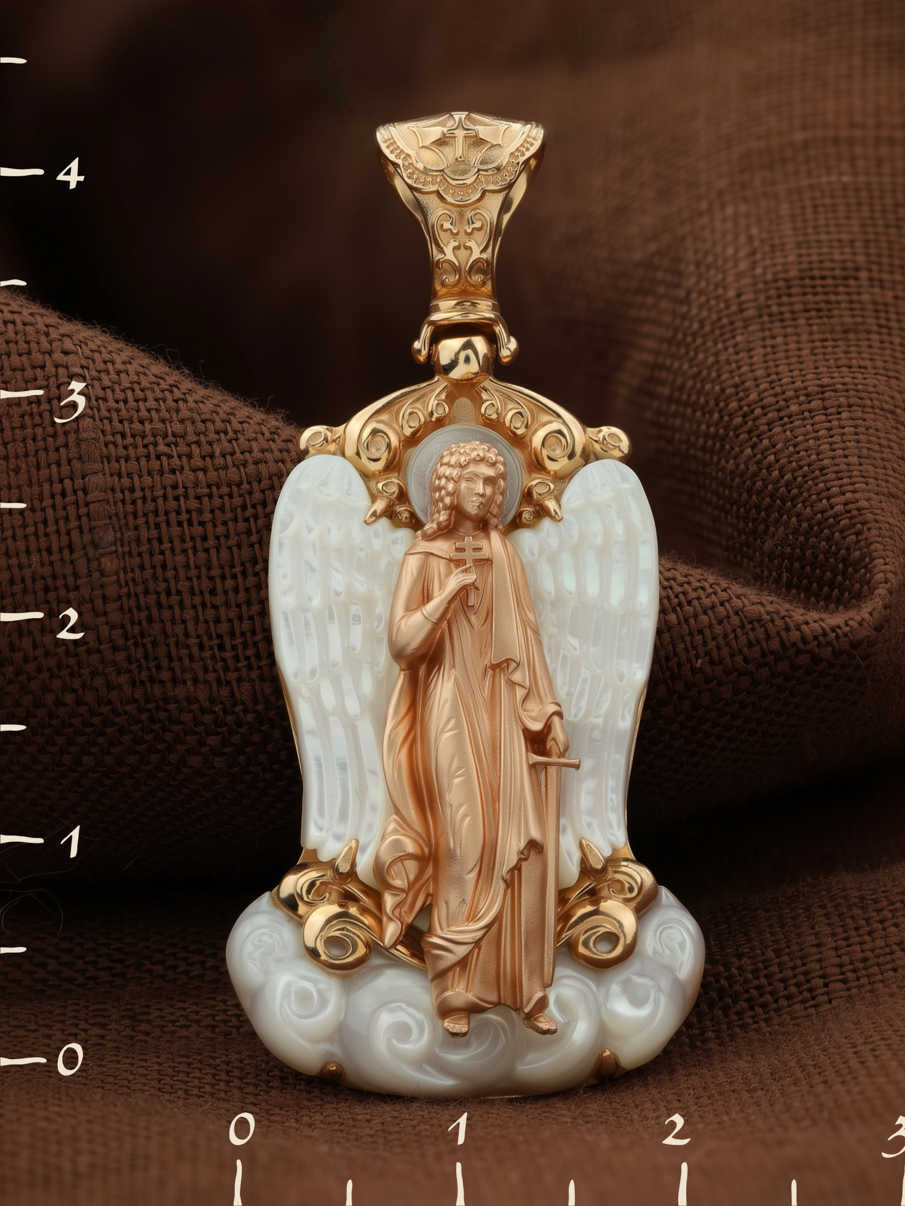 На лицевой стороне образка изображен Святой Ангел-Хранитель держащий в правой руке крест, а в левой — мечь. Ангел-Хранитель — это Ангел приставляемый Богом к человеку при крещении для охраны и помощи в добрых делах. Всё, что есть в нас доброго, чистого, светлого: всякая хорошая мысль, всякое доброе движение сердца, наша молитва, покаяние, добрые дела — всё это в нас рождается и совершается по внушению незримого нашего Ангела-Хранителя. Действуя через нашу совесть и наше сердце, это он, наш Ангел, удерживает нас от греха и соблазна, это он помогает нам бороться с искушениями, это он внушает нам страх пред тяжким грехопадением. Ангел, будучи служителем любви и мира, радуется о нашем покаянии и преуспеянии в добродетели, старается наполнять нас духовными созерцаниями (по мере нашей восприимчивости) и содействует нам во всяком добре. И, если мы сами не оттолкнём его от себя во время нашей земной жизни, он поведёт нашу душу и на поклонение Богу, когда наступит время разлучиться душе с телом.