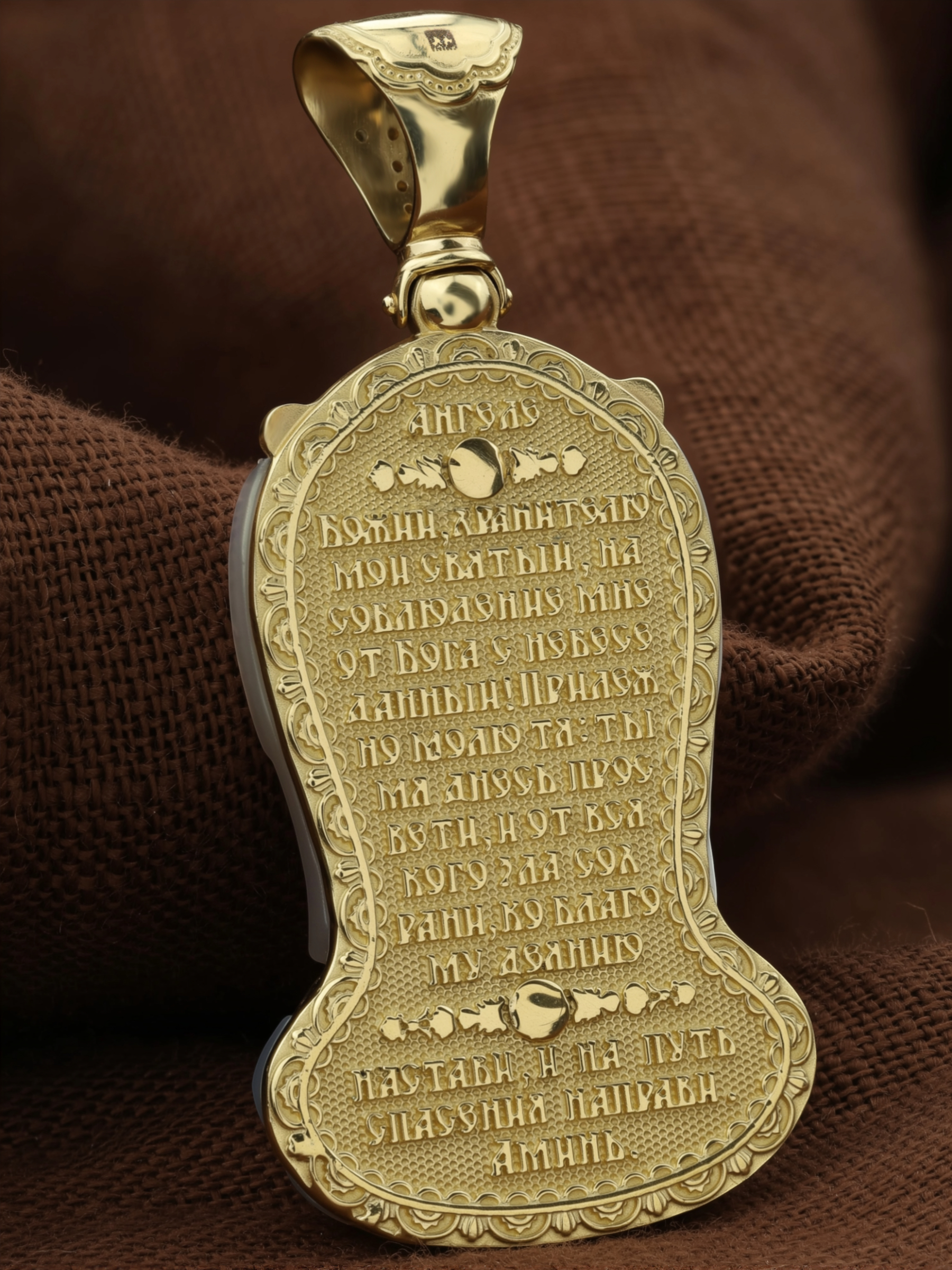 На оборотной стороне образка написана молитва: «Ангеле Божий, хранителю мой святый, на соблюдение мне от Бога с небесе данный! Прилежно молю тя: ты мя днесь просвети, и от всякаго зла сохрани, ко благому деянию настави, и на путь спасения направи. Аминь»