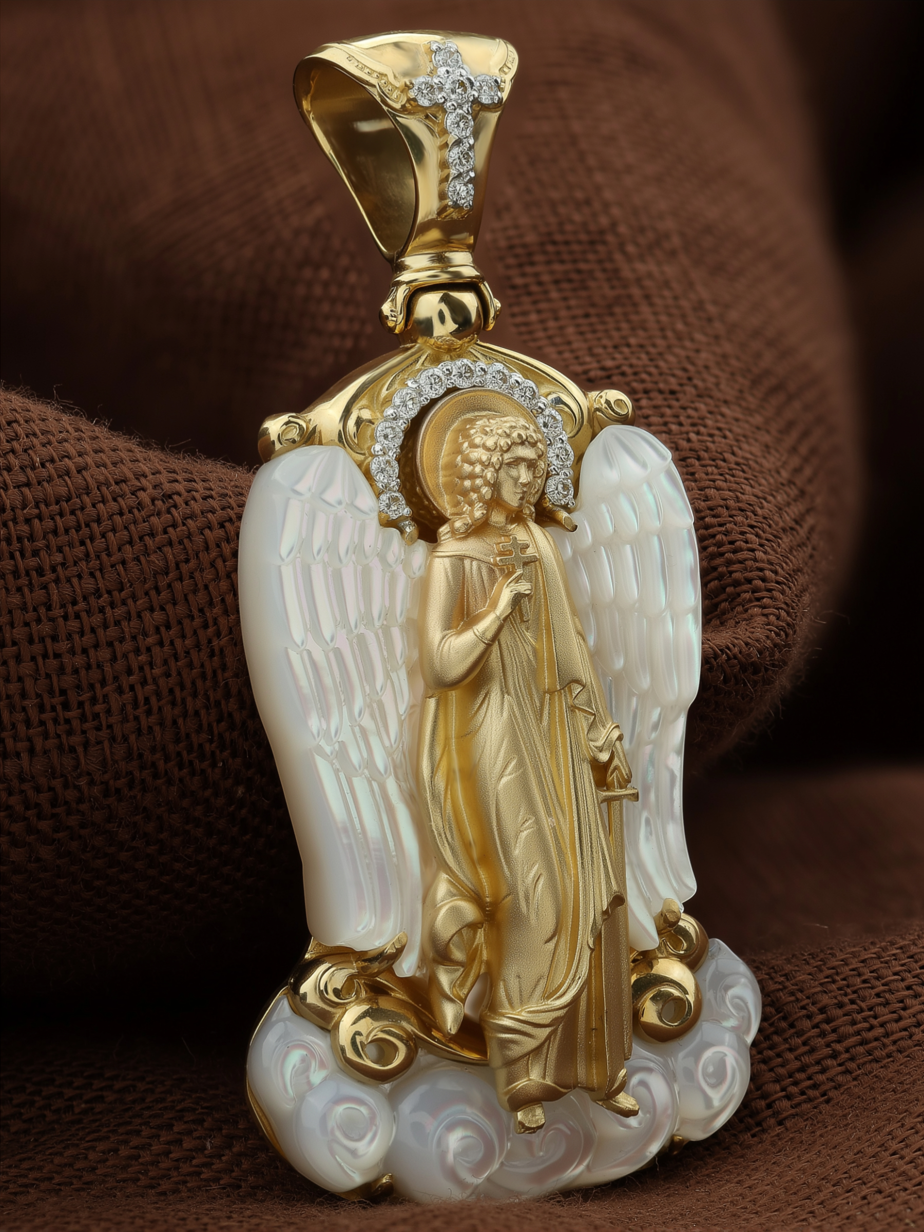 Образок из лимонного золота c бриллиантами и перламутром