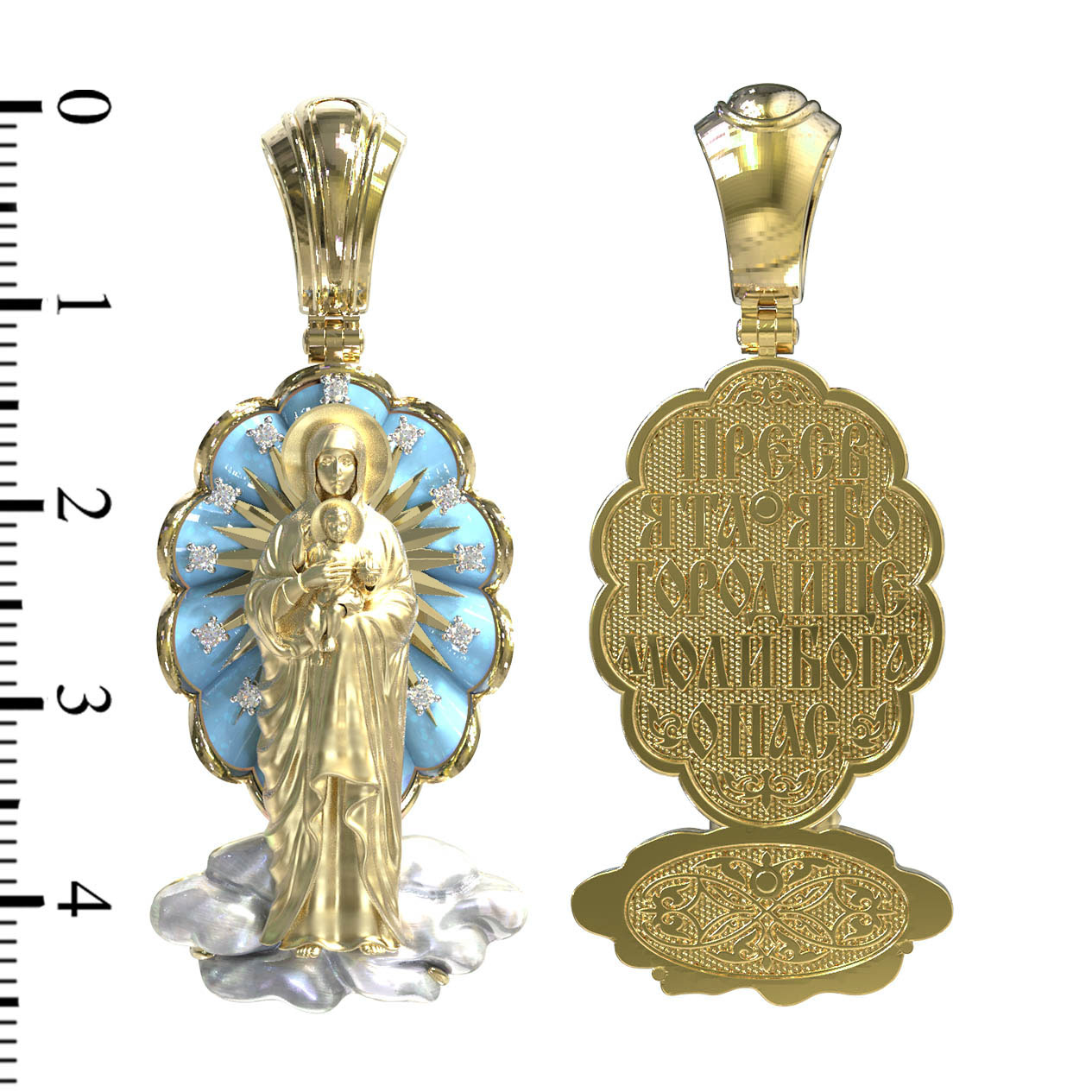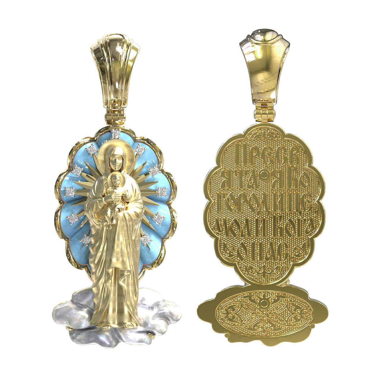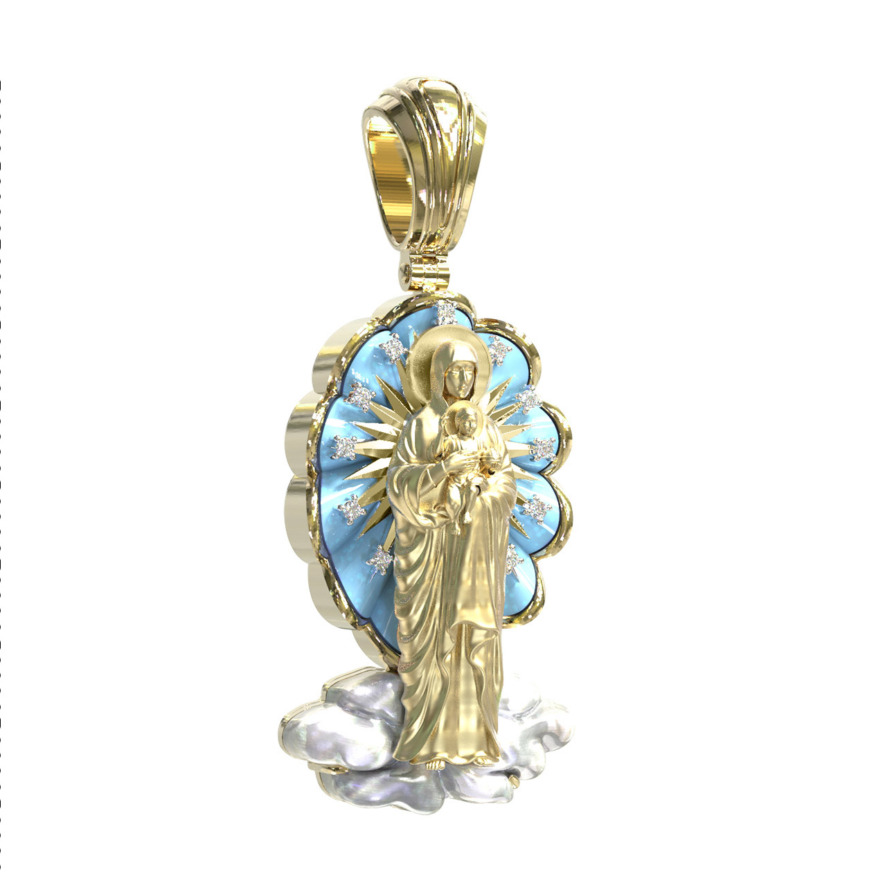 Образок из лимонного золота c бриллиантами, бирюзой и перламутром