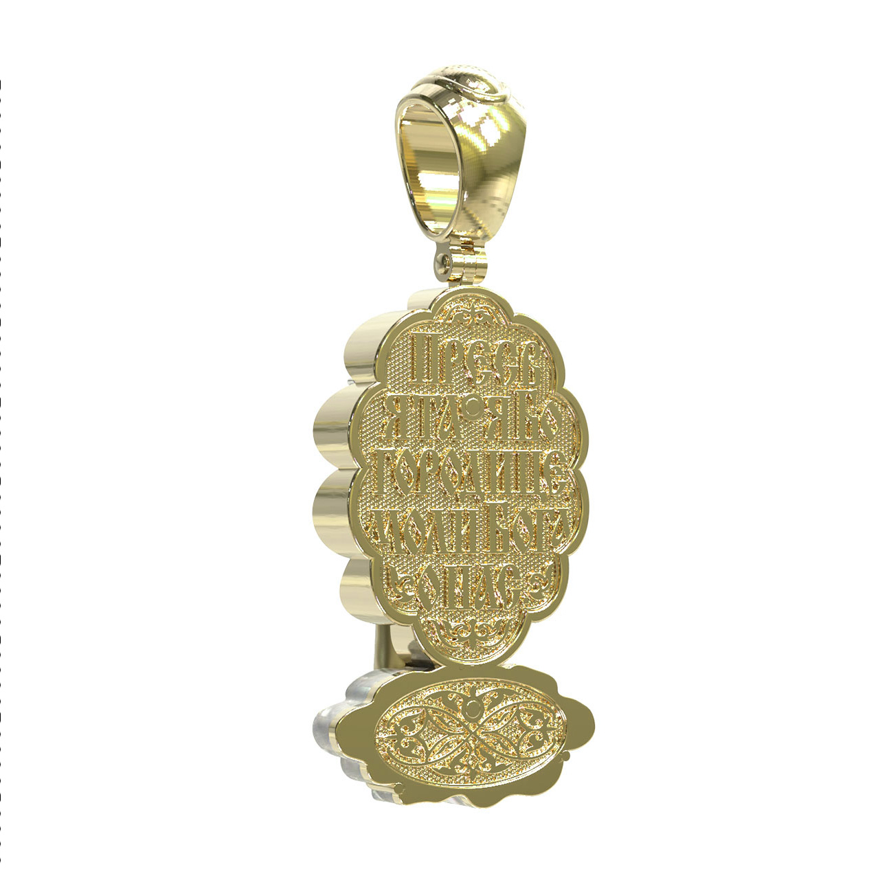 На оборотной стороне образка помещена молитва: «Пресвятая Богородице, моли Бога о нас.»