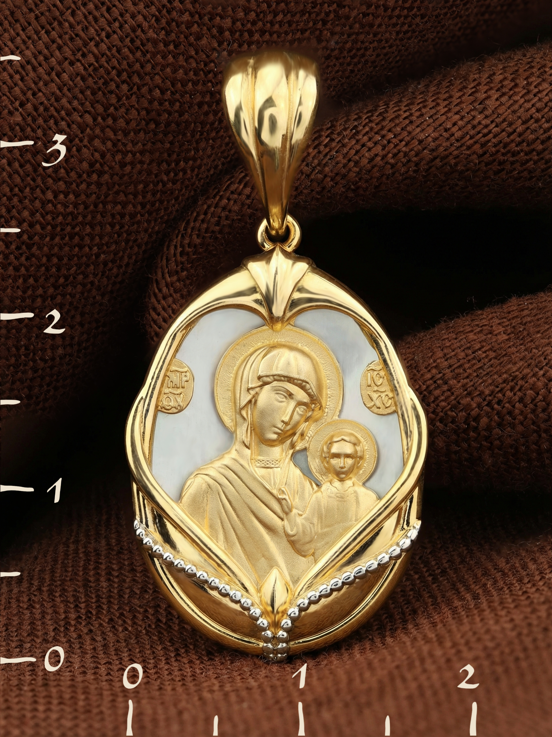 На лицевой стороне образка изображена Казанская икона Божией Матери. Пресвятая Богородица — милосердная заступница, просительница за нас перед Богом. Ее благодатная помощь изливается на нас по молитвам у ее чудотворных икон. Казанская икона явилась в 1579 году в Казани, вскоре после взятия Казанского царства у татар Иоанном Грозным. Этот образ Богородицы не раз сопровождал русский народ в бедствиях. Икона Божией Матери Казанская вдохновляла русских ратников в период Смутного времени при освобождении Москвы от поляков. Перед Казанской иконой в 1709 году, накануне Полтавской победы, император Петр I молился о даровании победы русскому войску. В 1812 году накануне отъезда в действующую армию перед чудотворной иконой Божией Матери молился князь Михаил Кутузов. Не только государственным мужам и дружинам указывала путь икона — по доброй традиции именно этой иконой благословляют на брак молодых родители, длинным списком чудес сопровождается этот образ Богоматери — один из самых любимых на Руси. Существует множество древних списков с этой удивительной иконы.