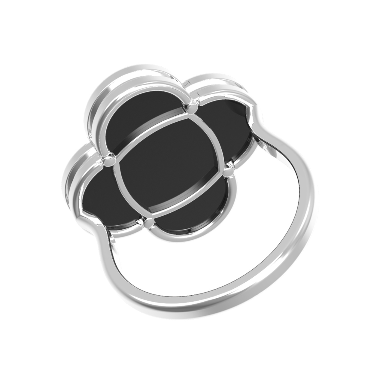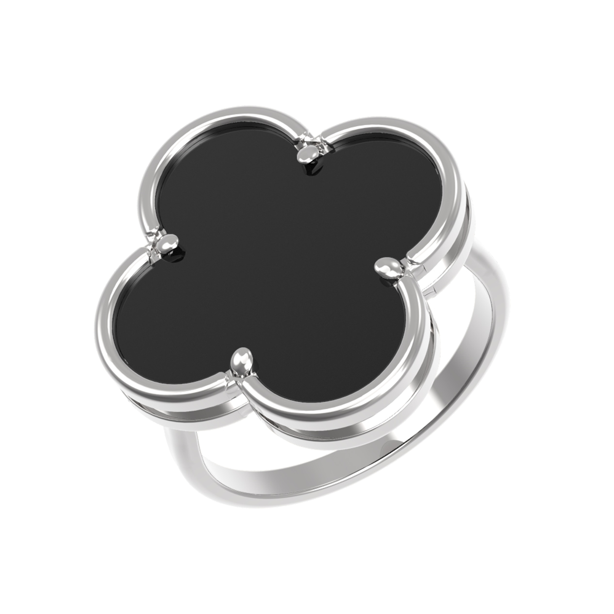 Выбирая кольцо из белого золота с ониксом, вы приобретаете украшение, которое сохранит свою актуальность на долгие годы. Добавьте в свою коллекцию аксессуар, сочетающий в себе классический дизайн клевера и современную эстетику исполнения.