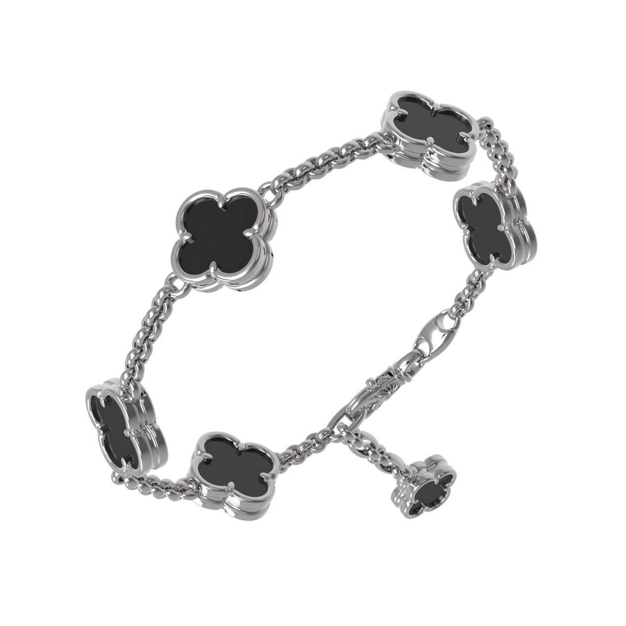 Данная модель универсальна: браслет одинаково гармонично смотрится как на женской, так и на мужской руке, становясь акцентным элементом повседневного или вечернего стиля. Дизайн в форме клевера считается символом удачи и благополучия, что делает украшение не только эстетически привлекательным, но и наполненным особым смыслом. Качественное исполнение и выверенные пропорции обеспечивают комфортное ношение изделия каждый день.