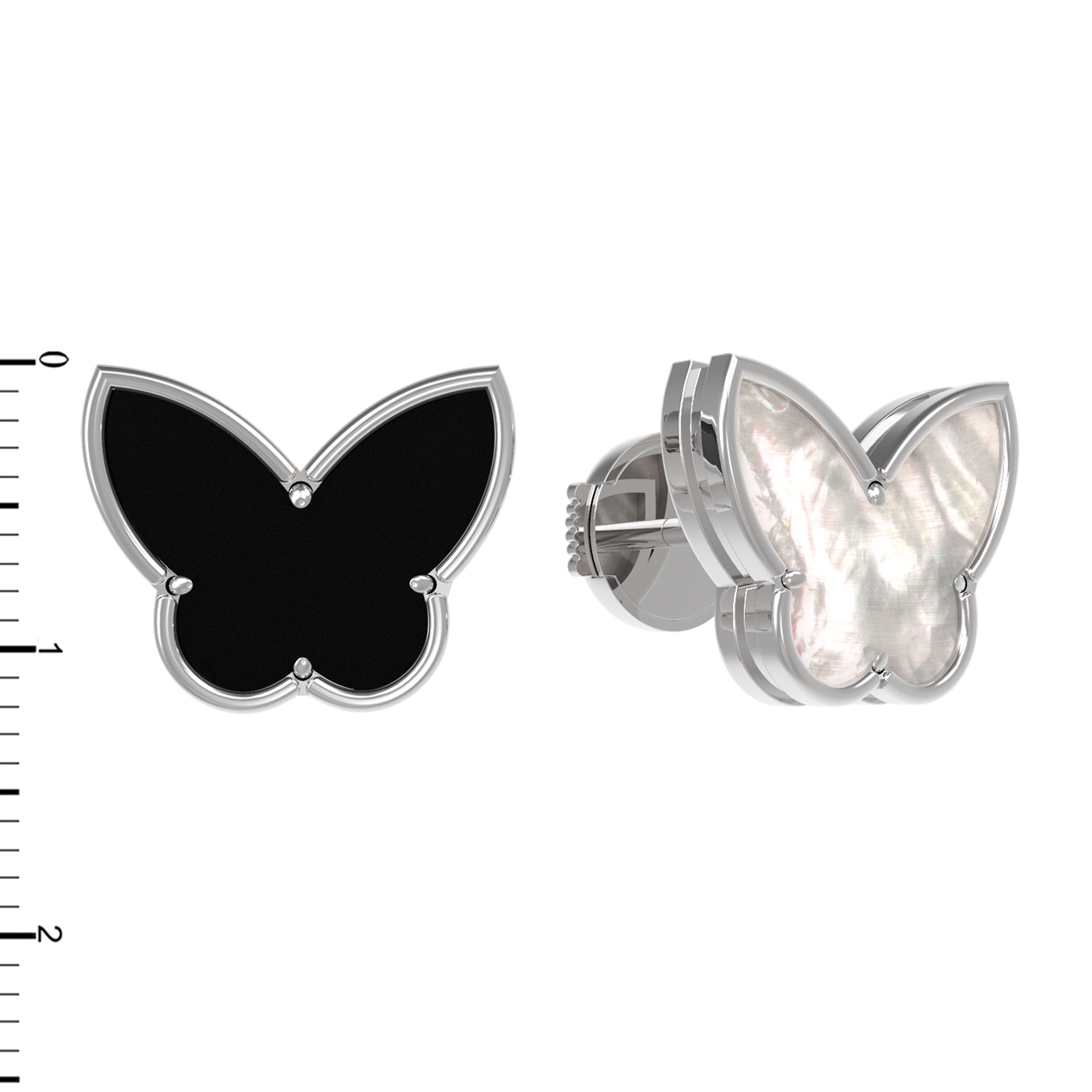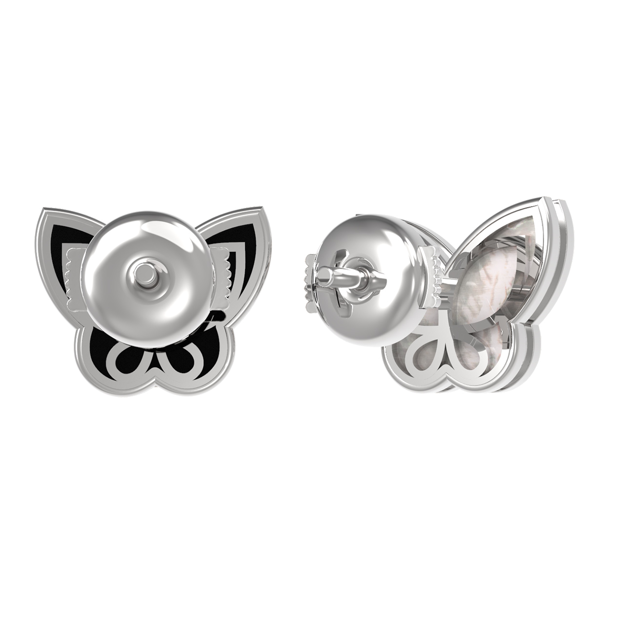 Серьги из белого золота c ониксом и перламутром