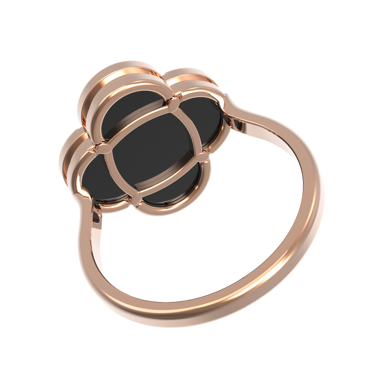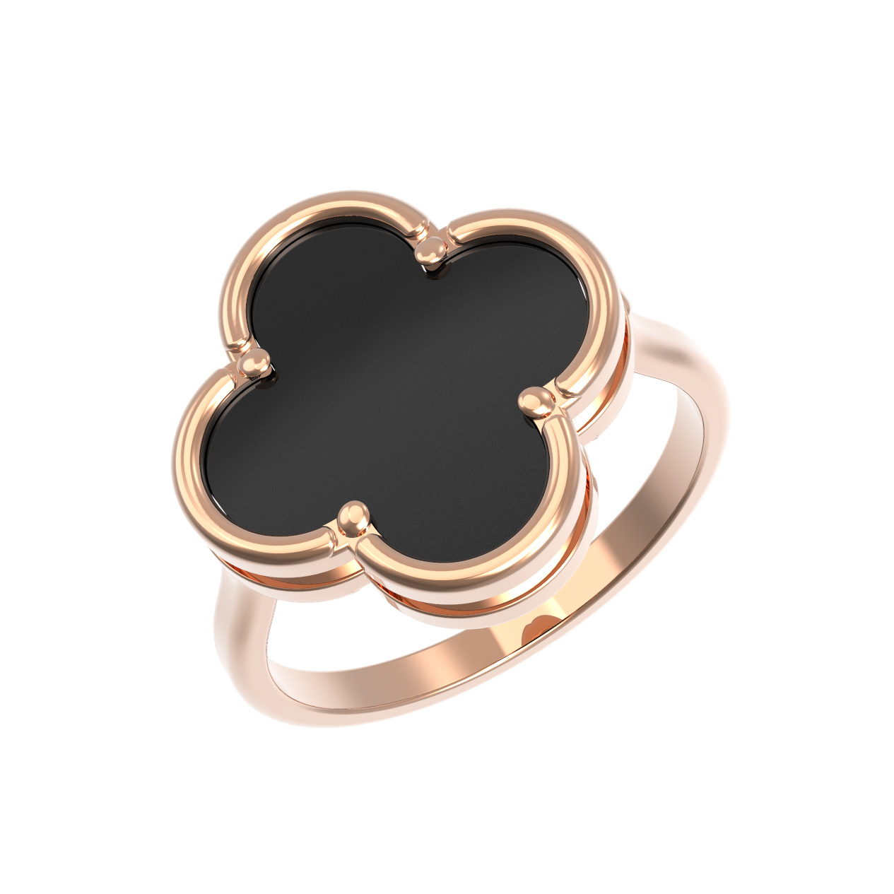 Изящное кольцо из коллекции De Luxe — Клевер весна станет воплощением вашего безупречного стиля. Ювелирное изделие выполнено из благородного красного золота 585 пробы, чей теплый оттенок гармонично подчеркивает глубину черного оникса. Дизайн модели обыгрывает узнаваемый и символичный мотив клевера, который придает украшению особую эстетическую выразительность.