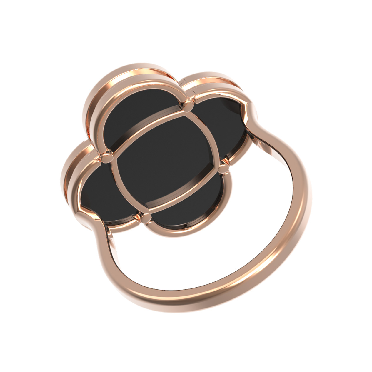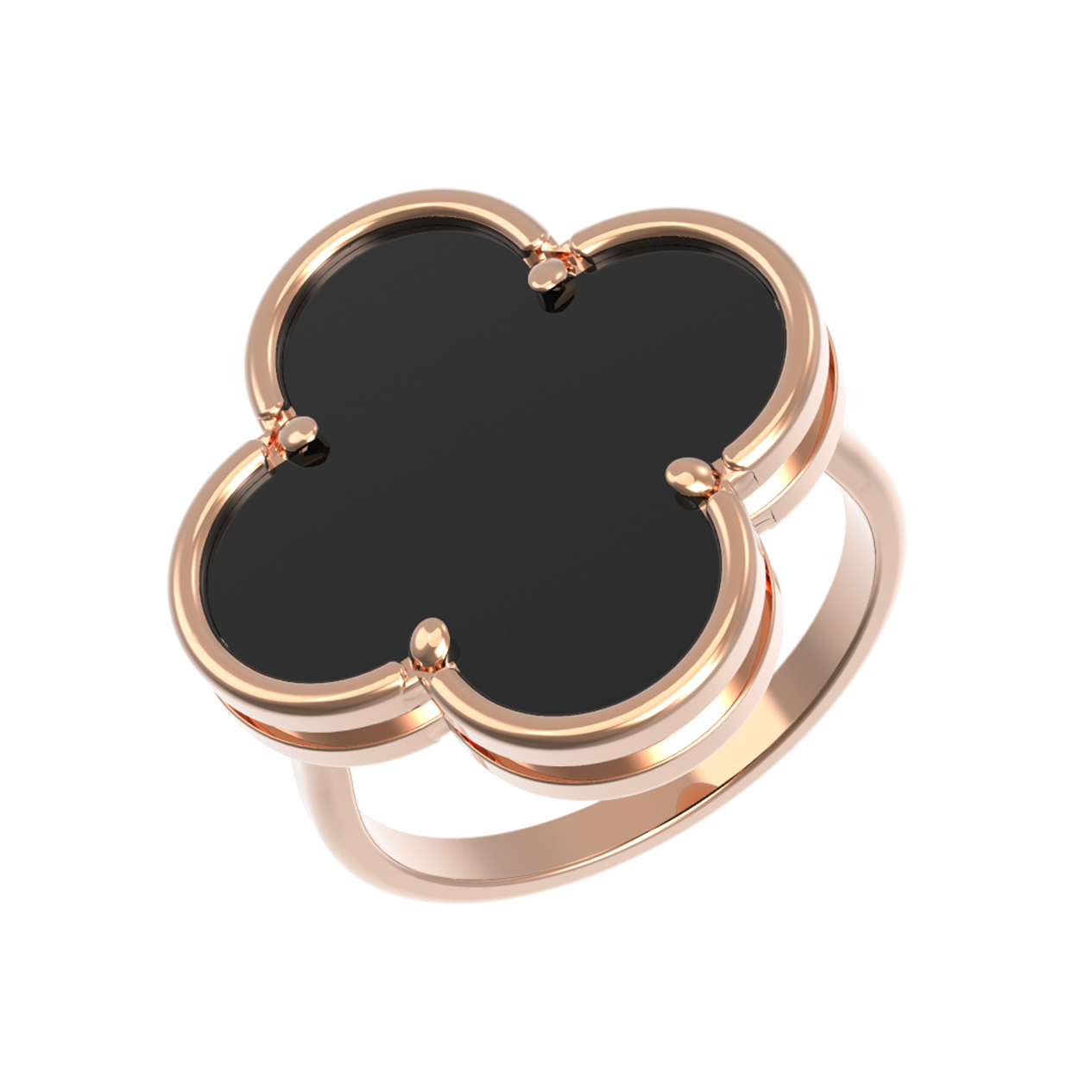 Элегантное кольцо из красного золота 585 пробы станет изысканным акцентом вашего образа. Дизайн украшения выполнен в форме четырехлистного клевера — символа удачи и гармонии, который обрел особенную выразительность благодаря контрастному сочетанию теплого оттенка благородного металла и глубокого черного цвета вставки из натурального оникса. В модели используется одна крупная вставка, создающая лаконичный и завершенный визуальный эффект.