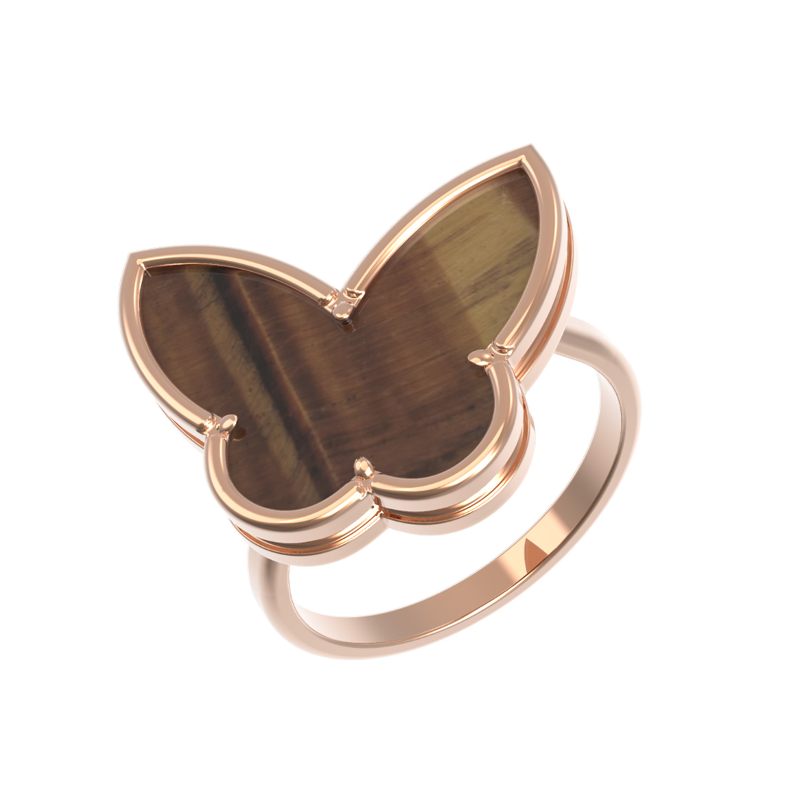 Кольцо из золота с тигровым глазом из коллекции De Luxe — Клевер весна воплощает в себе лаконичность и природную эстетику. Это изысканное украшение выполнено из качественного красного золота 585 пробы, чей теплый оттенок идеально гармонирует с глубоким, переливчатым блеском натурального камня. Дизайн изделия, вдохновленный формой клевера, придает украшению особый шарм и узнаваемый облик.