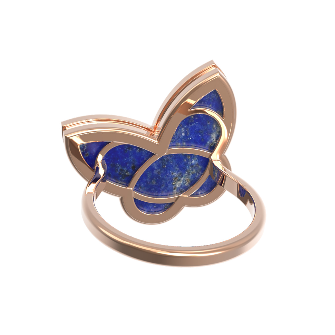 Элегантное кольцо из красного золота 585 пробы станет утонченным дополнением вашего образа. Украшение представлено в рамках коллекции De Luxe — Клевер весна и привлекает внимание своим изысканным дизайном в форме четырехлистного клевера. Центральным акцентом изделия выступает одна вставка из натурального лазурита глубокого синего цвета, которая гармонично сочетается с теплым блеском благородного металла.