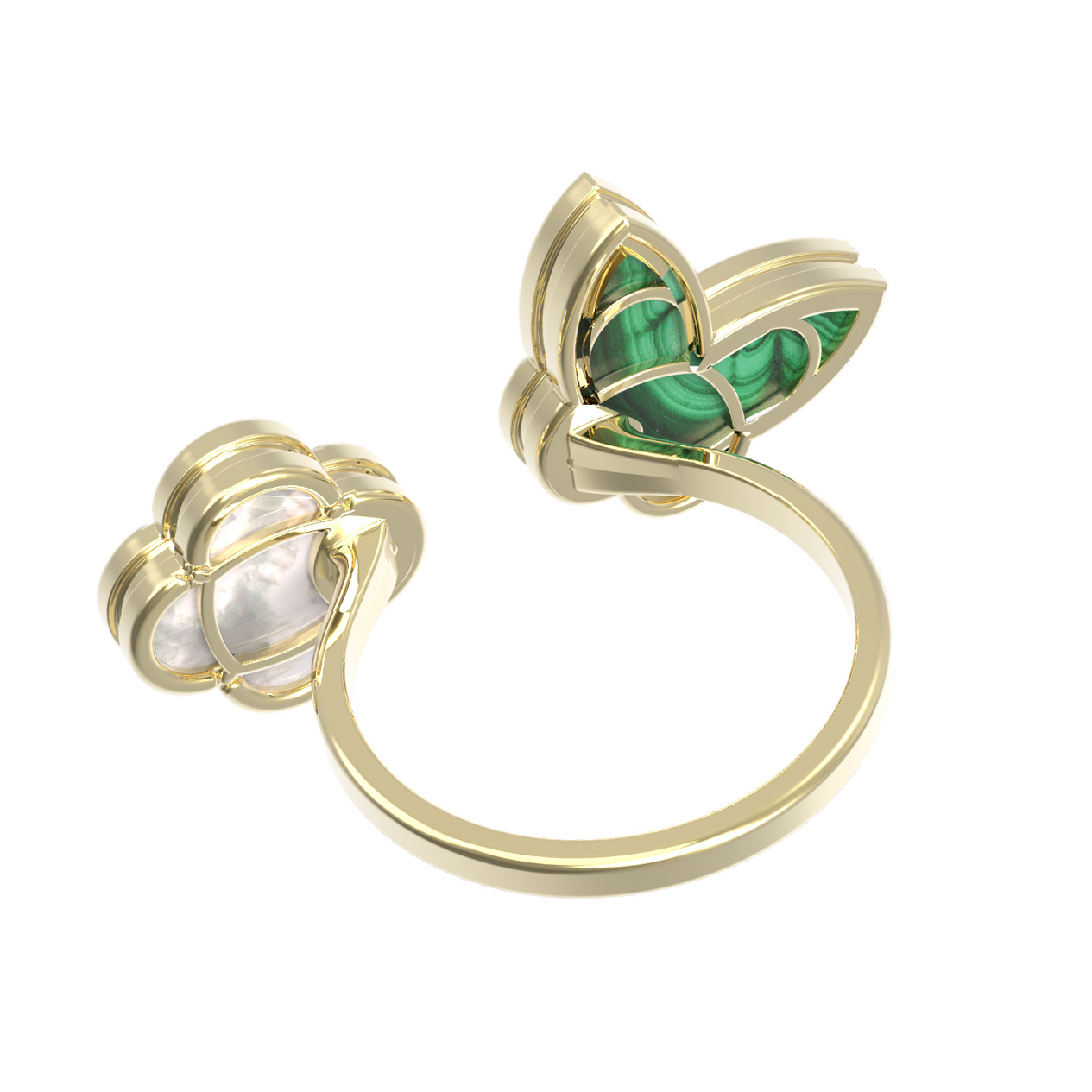 Кольцо из лимонного золота c малахитом и перламутром