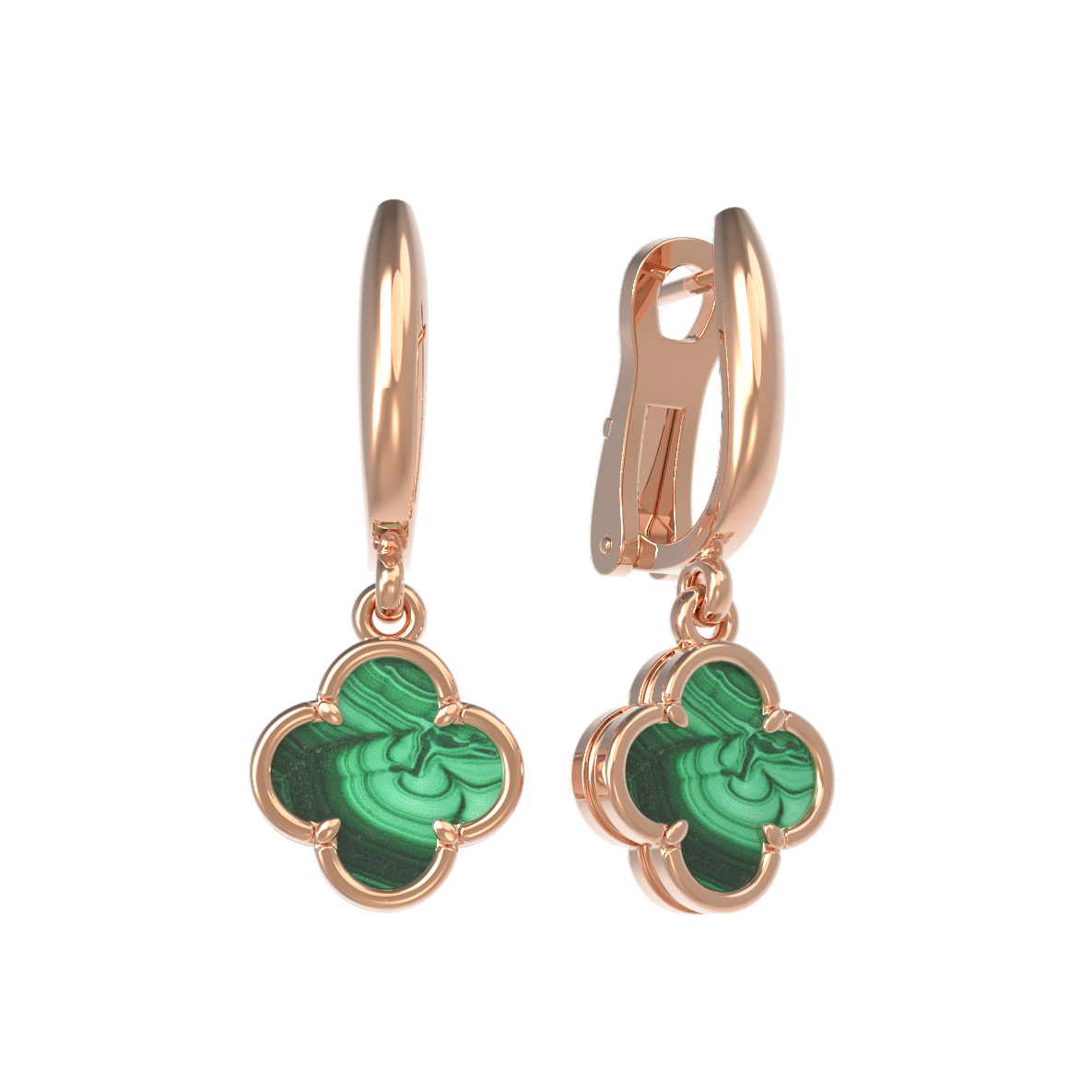 Изысканные серьги из красного золота 585 пробы станут воплощением утонченного вкуса и природной красоты. Эти украшения, представленные в коллекции De Luxe — Клевер весна, выполнены в узнаваемом дизайне Клевер, который символизирует гармонию и благополучие. Главный акцент изделия — насыщенный зелёный цвет вставок из натурального малахита, чей уникальный природный рисунок притягивает взгляд и подчеркивает глубину каждого камня.