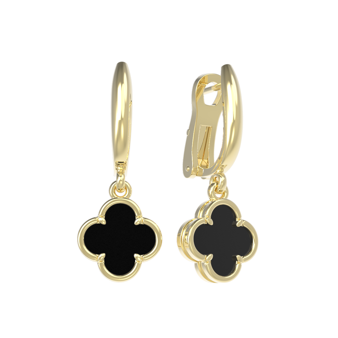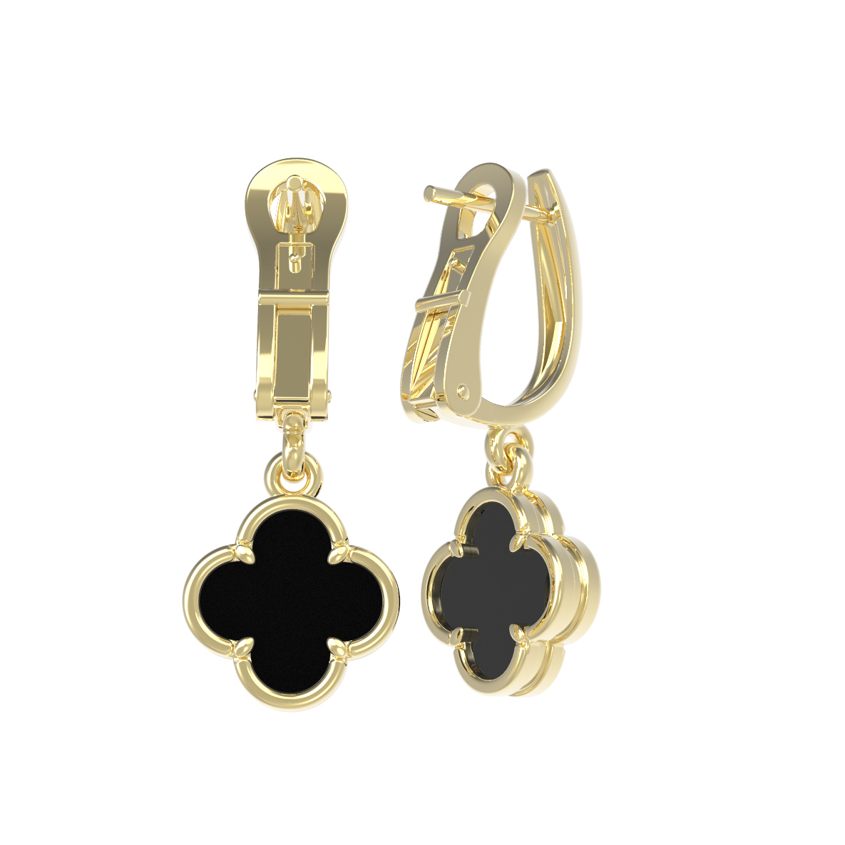 Элегантные серьги из коллекции De Luxe — Клевер весна станут безупречным дополнением вашего образа, подчеркивая статус и тонкий вкус владельца. Ювелирное изделие выполнено из лимонного золота 585 пробы, чей благородный оттенок гармонично дополняет глубокий черный цвет вставок. Две вставки из оникса имеют узнаваемый и символичный дизайн в виде клевера, который придает украшению особое очарование и эстетическую выразительность.