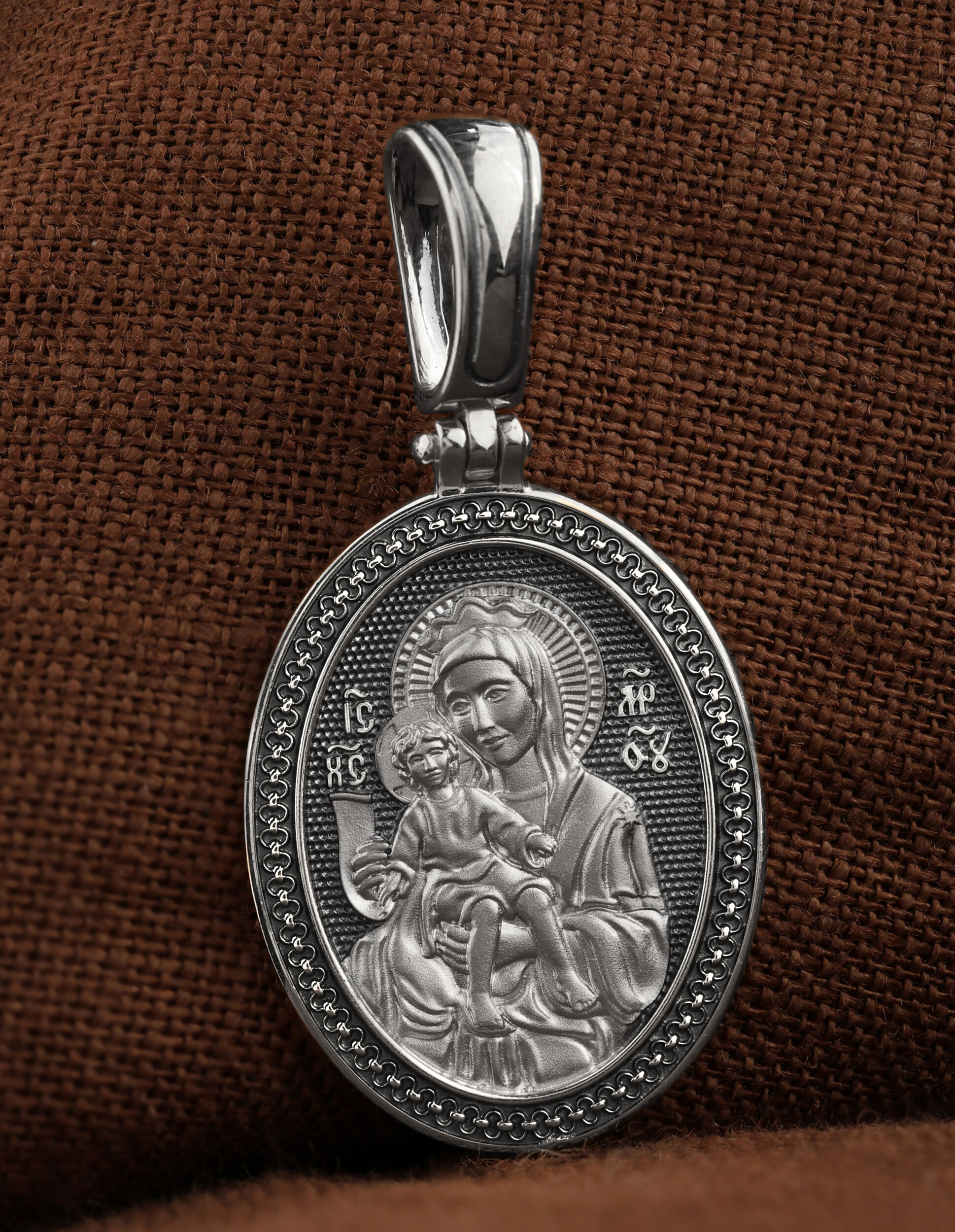 На обороте образка написана молитва:«Ныне к Тебе прибегаю, Пречистая Дево, спаси мя мольбами Твоими».