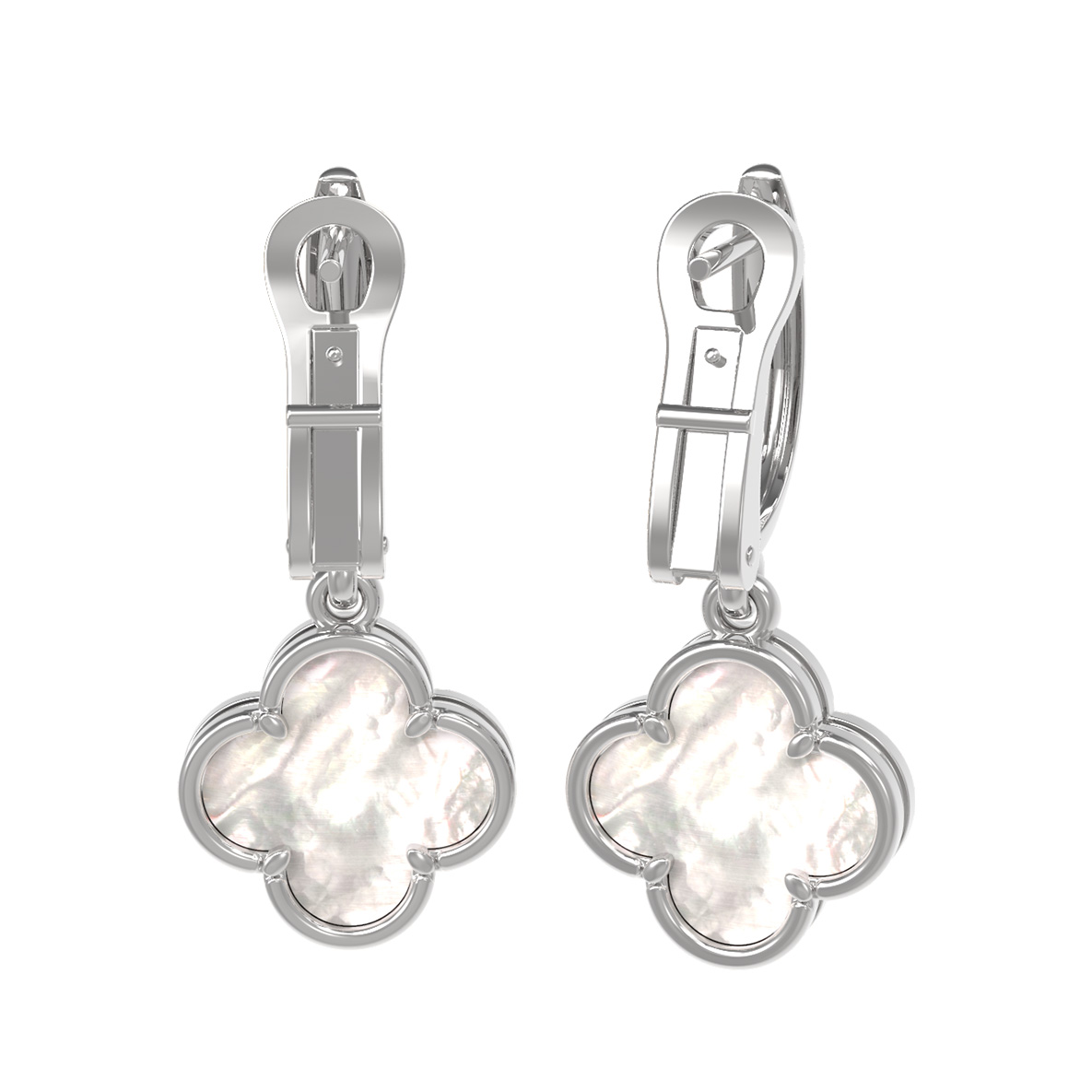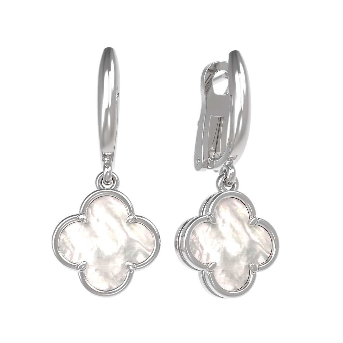 Серьги из белого золота с перламутром — это воплощение элегантности и утонченного стиля, которое станет прекрасным дополнением к вашему образу. Изделие выполнено из высококачественного белого золота 585 пробы, что обеспечивает долговечность и благородный блеск, подчеркивающий холодное сияние металла. Дизайн в форме клевера является символом удачи и гармонии, придавая украшению особый смысл.