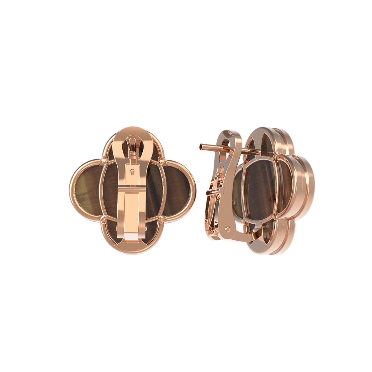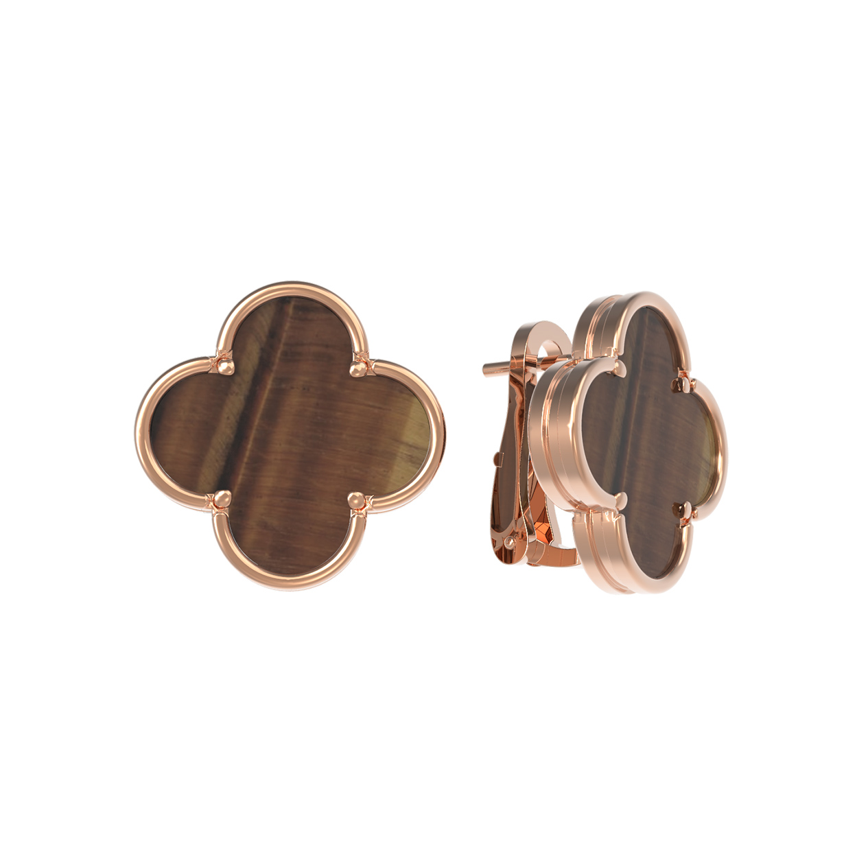 Элегантные серьги из красного золота 585 пробы из коллекции De Luxe — Клевер весна станут безупречным дополнением вашего образа. Дизайнерское исполнение в форме клевера придает украшению особую эстетику, наполненную символизмом удачи и природной гармонии. Теплый оттенок красного золота гармонично сочетается с глубоким оранжевым цветом вставок из натурального тигрового глаза.
