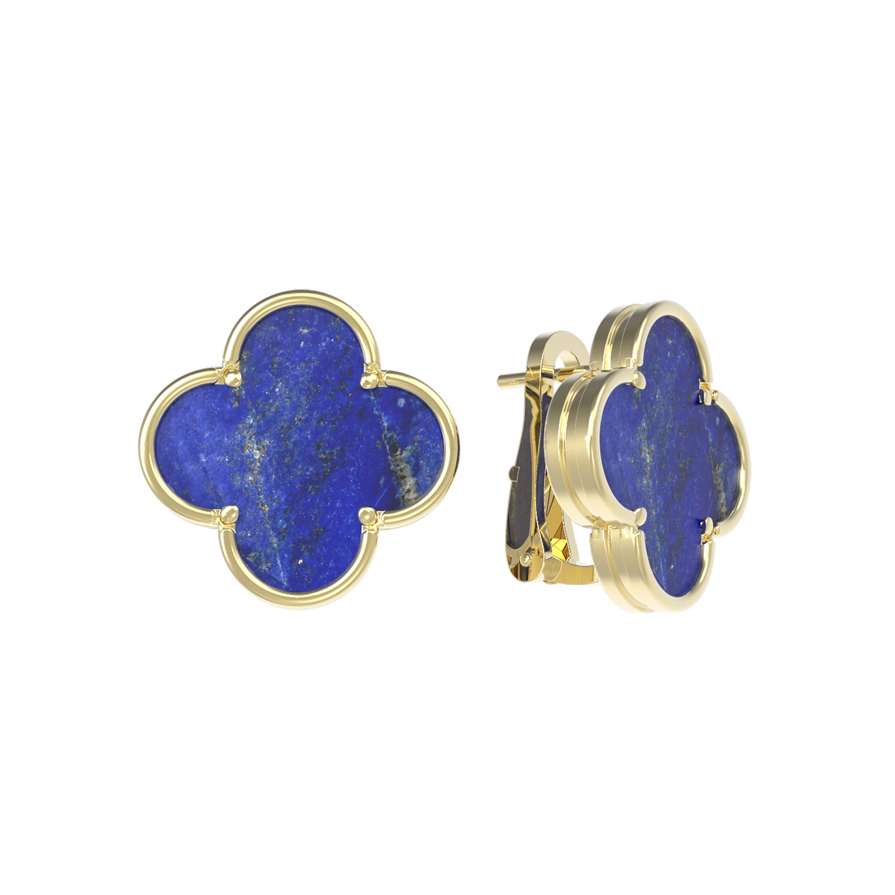Элегантные и выразительные, эти серьги станут воплощением утонченного вкуса в вашем ювелирном гардеробе. Изделие выполнено в знаковом дизайне клевер, который давно стал символом удачи и изящества. Глубокий, насыщенный синий цвет вставок из натурального лазурита притягивает взгляд, создавая роскошный контраст с благородным блеском металла. Для создания украшения было использовано лимонное золото 585 пробы — материал, который подчеркивает теплоту и эксклюзивность каждой детали.