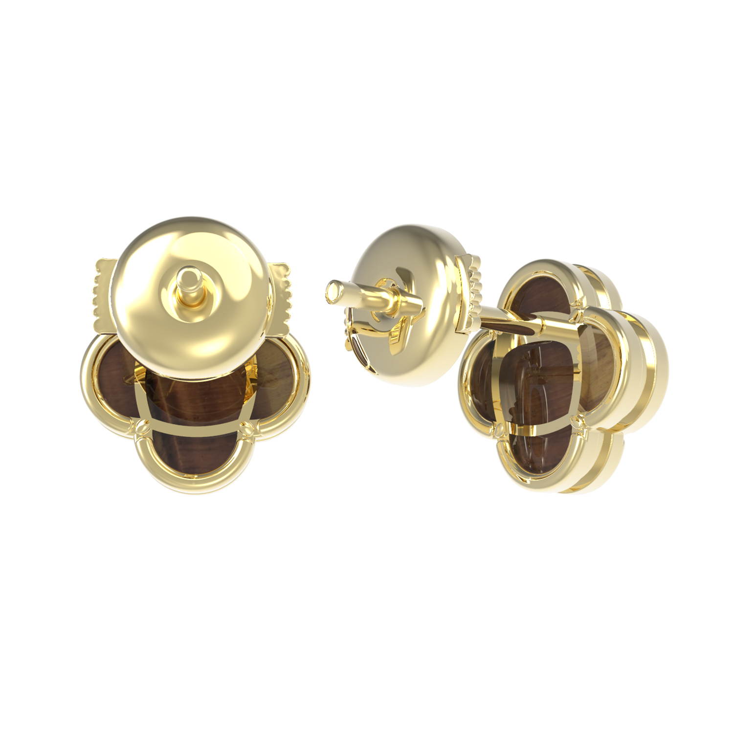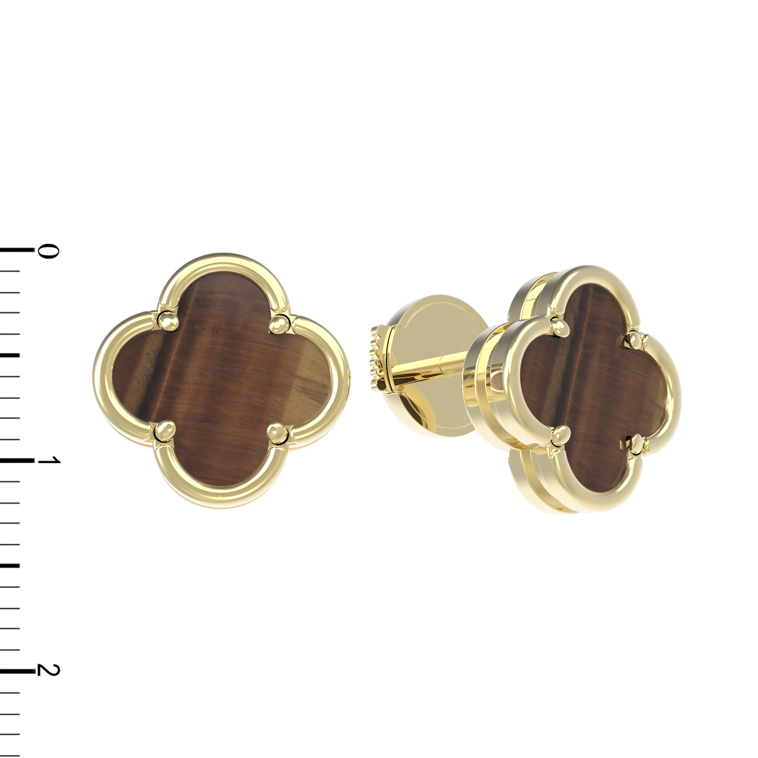 Центральным элементом композиции стали вставки из тигрового камня. Глубокий оранжевый оттенок минерала, обрамленный теплым сиянием лимонного золота, создает контрастное и выразительное сочетание. Каждая пара включает две вставки, которые подчеркивают естественную красоту камня. Тщательно проработанная форма и безупречная полировка металла обеспечивают комфорт при ношении и долговечность изделия.