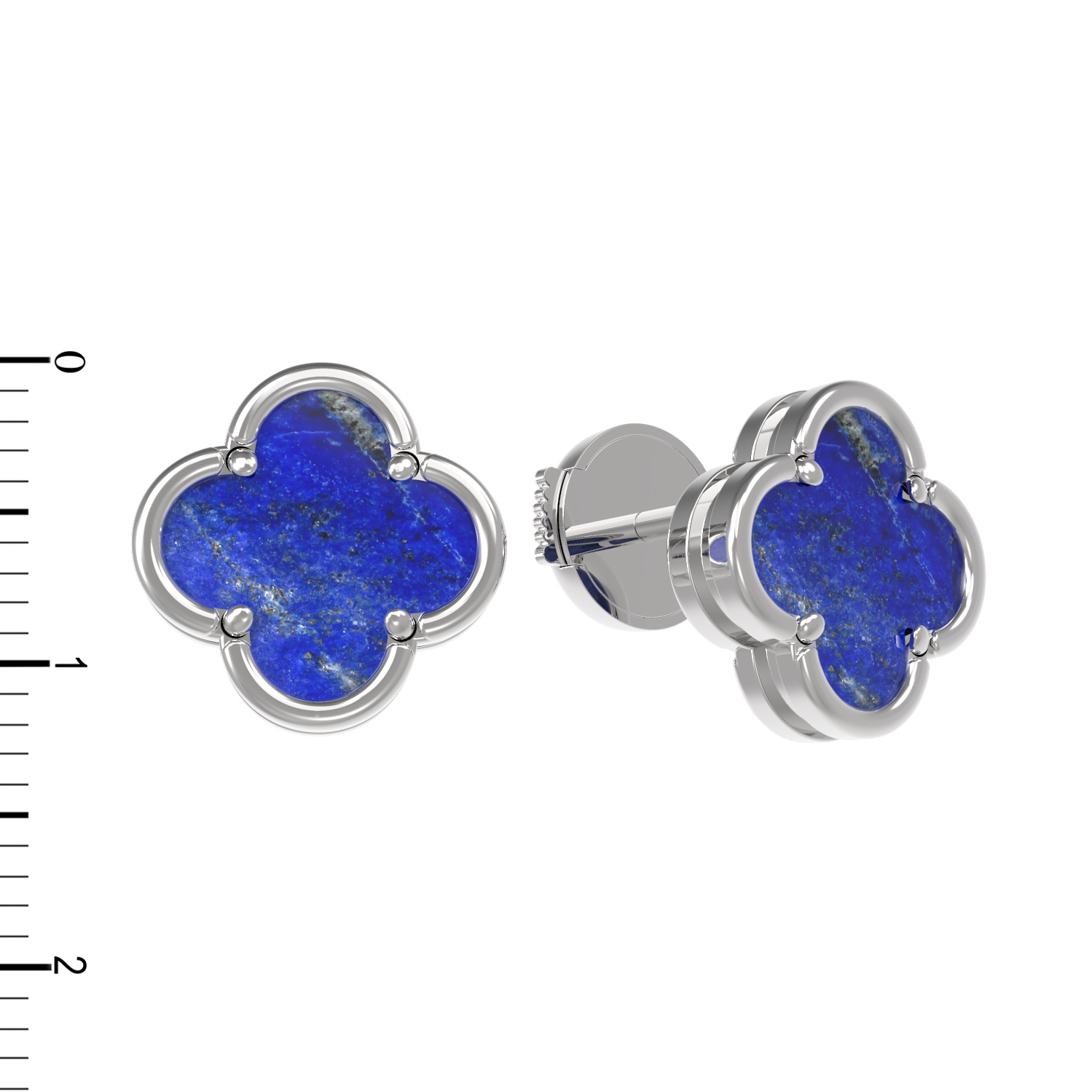 Элегантные серьги из белого золота 585 пробы — это воплощение утонченности и лаконичного стиля. Дизайн в форме клевера делает их универсальным аксессуаром, который гармонично дополнит как повседневный, так и вечерний образ. Глубокий синий цвет вставок из натурального лазурита приковывает взгляд, создавая изысканный контраст с холодным блеском драгоценного металла. Каждая пара украшена двумя вставками, что обеспечивает симметрию и безупречный внешний вид.