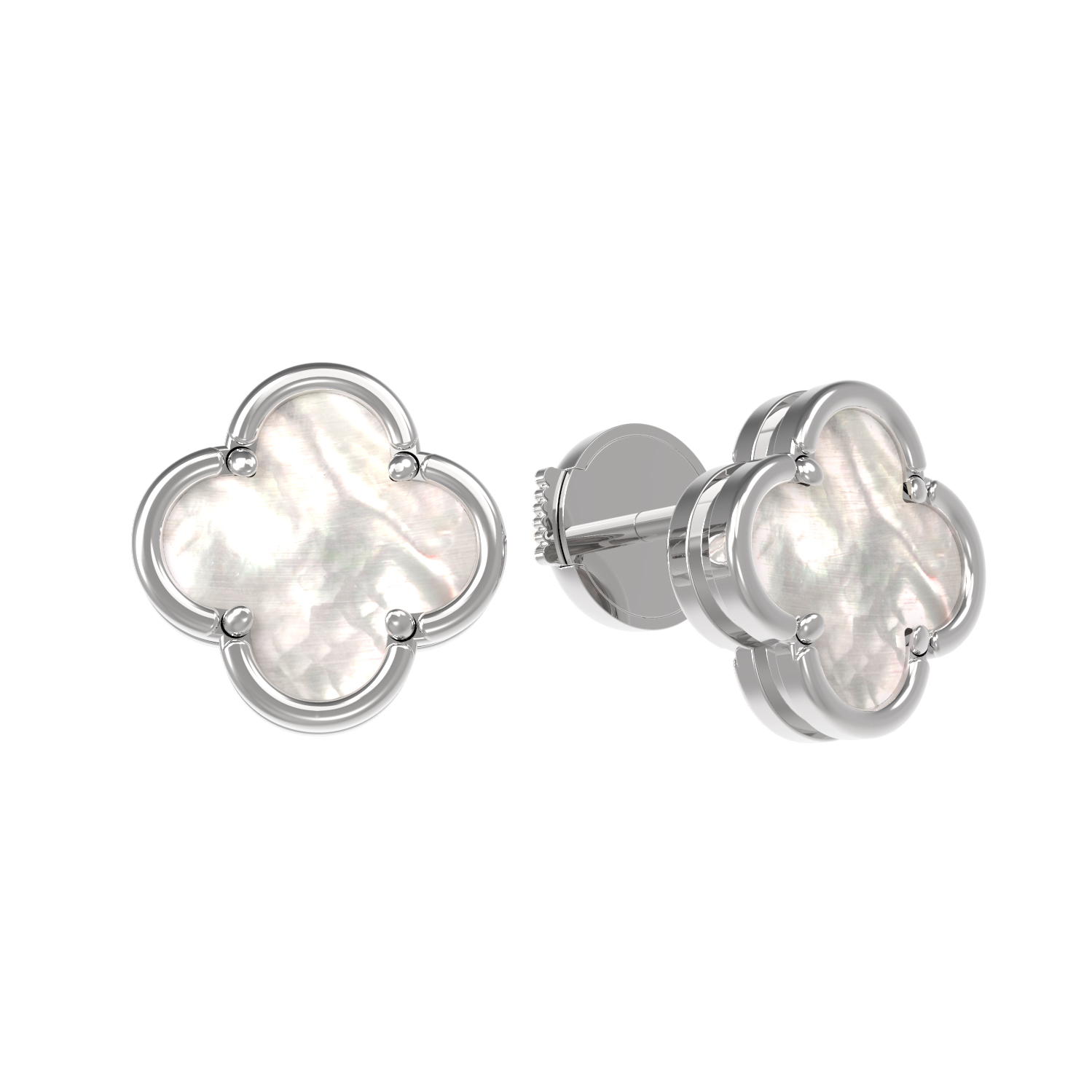 Изящные серьги из белого золота 585 пробы станут воплощением утонченного вкуса и символом элегантности в вашем образе. Дизайн изделия выполнен в форме четырехлистного клевера — классического мотива, который придает украшению особое очарование. В качестве центральной вставки использован благородный перламутр, чье мягкое, переливающееся сияние гармонично сочетается с холодным блеском белого золота.