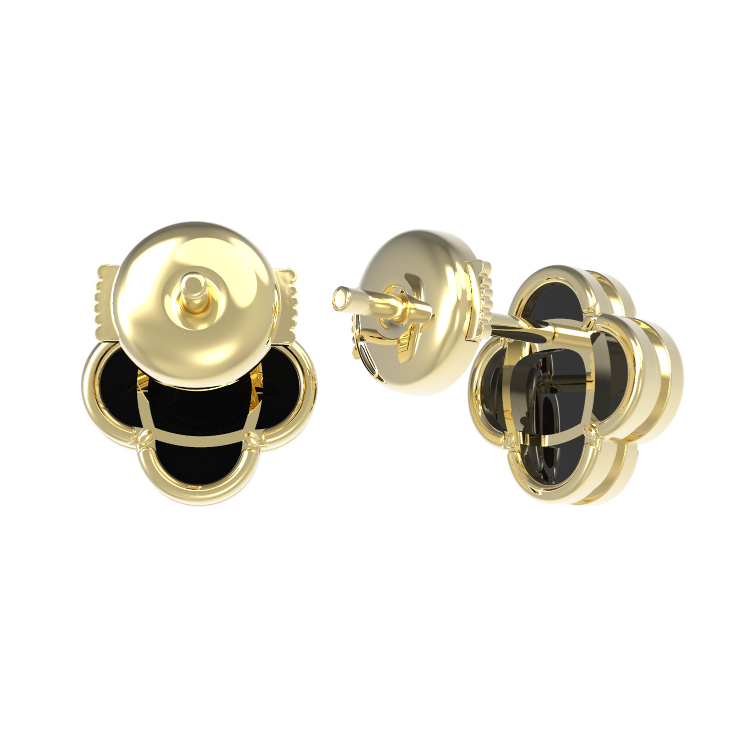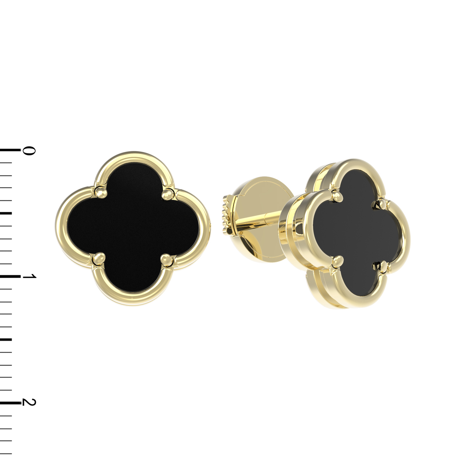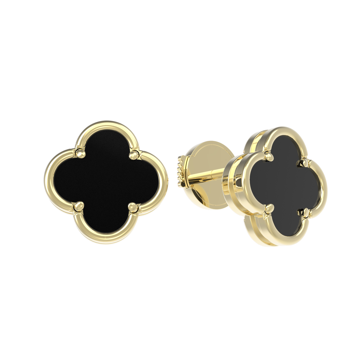 Элегантные серьги из лимонного золота 585 пробы из коллекции De Luxe — Клевер весна станут безупречным акцентом вашего образа. Дизайн изделия выполнен в форме изящного клевера, который придает украшению особое очарование и символичность. Главным декоративным элементом выступает глубокий черный оникс, гармонично контрастирующий с теплым сиянием лимонного металла.