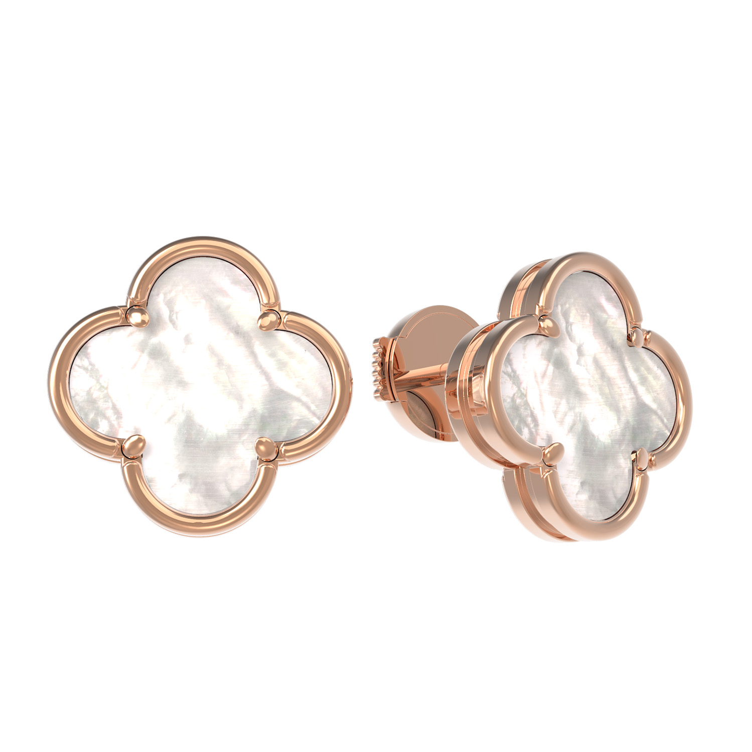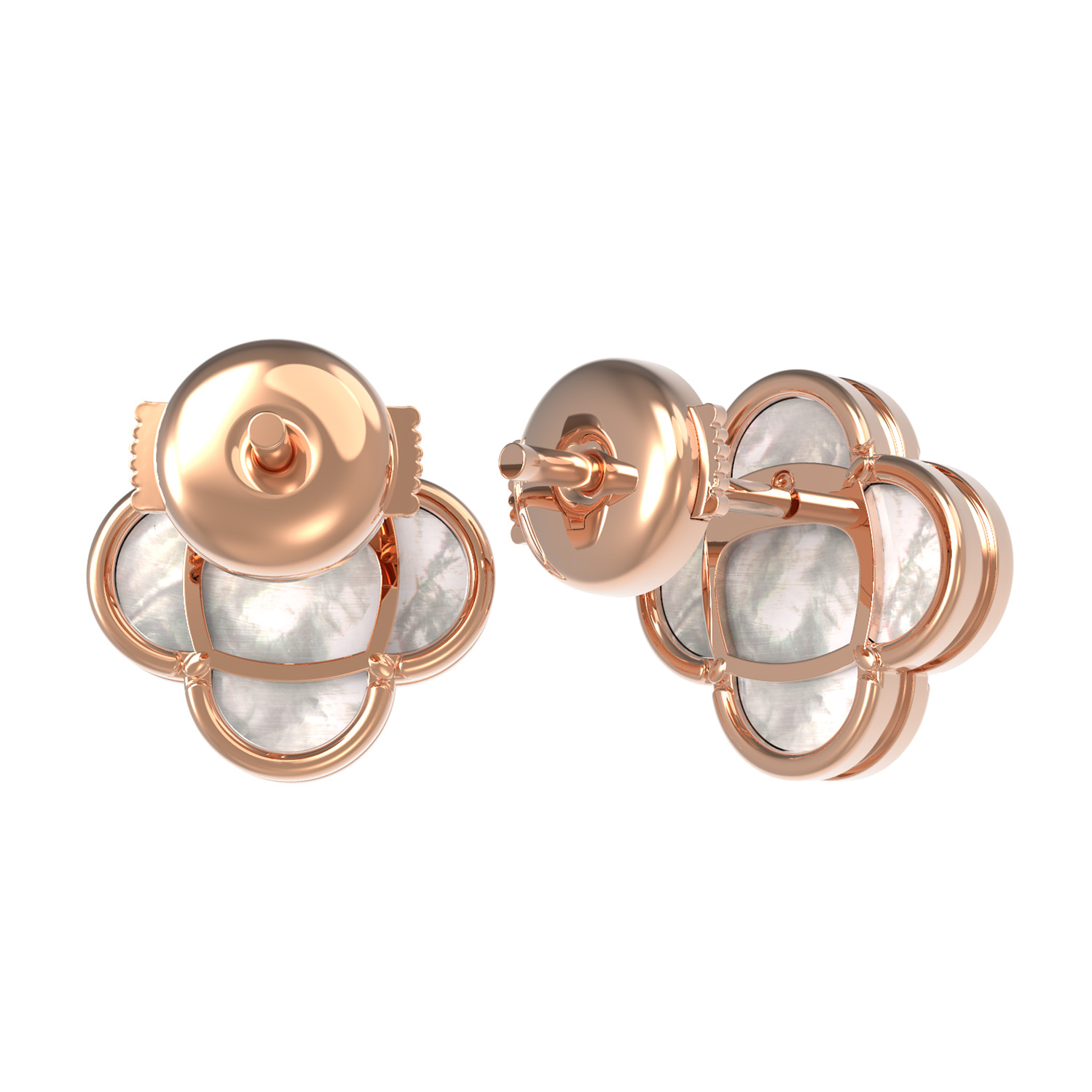 Центральным элементом дизайна является натуральный перламутр. Вставка из перламутра обладает уникальным природным переливом, создавая нежное свечение, которое эффектно контрастирует с теплым блеском красного золота. Такая игра света делает серьги универсальным дополнением как к повседневному, так и к вечернему образу.