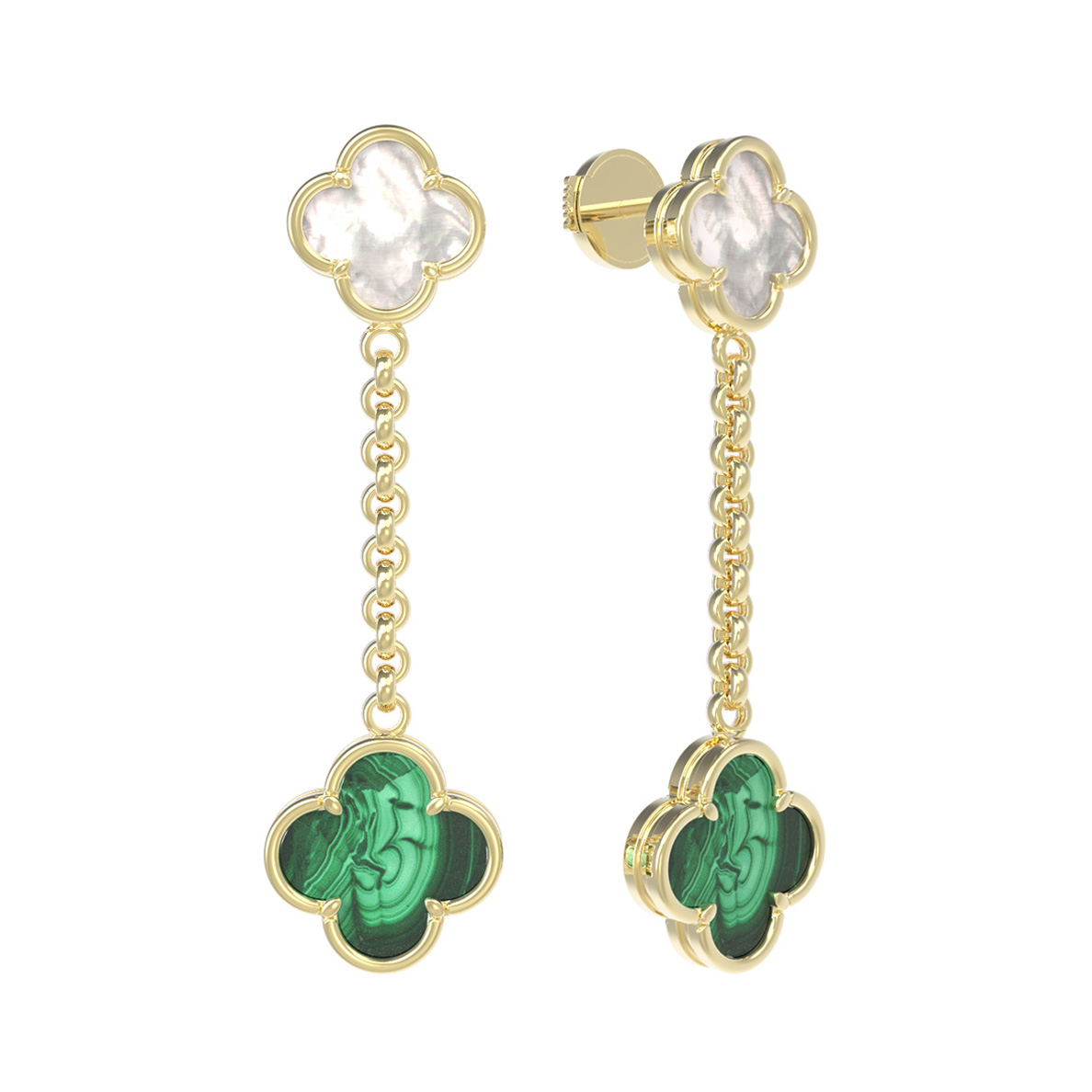 Серьги идеально сочетаются с другими украшениями бренда, позволяя формировать элегантные комплекты для повседневных выходов или торжественных мероприятий. Каждая деталь, от теплого блеска лимонного металла до игры света на перламутровой и малахитовой поверхности, свидетельствует о высоком качестве исполнения. Добавьте в свою ювелирную коллекцию украшение, которое никогда не выйдет из моды.