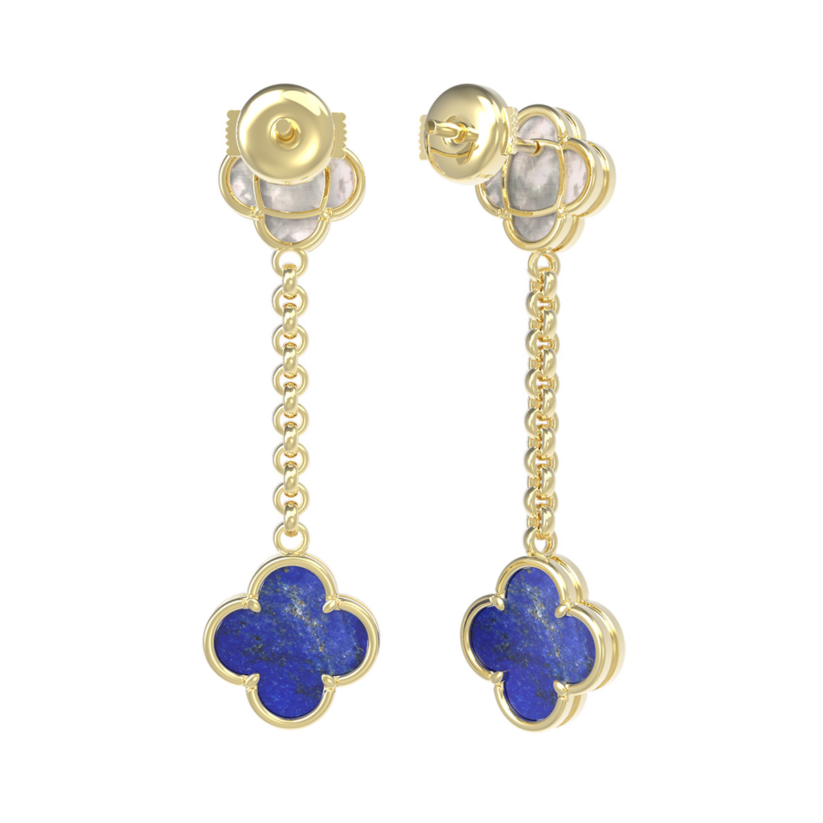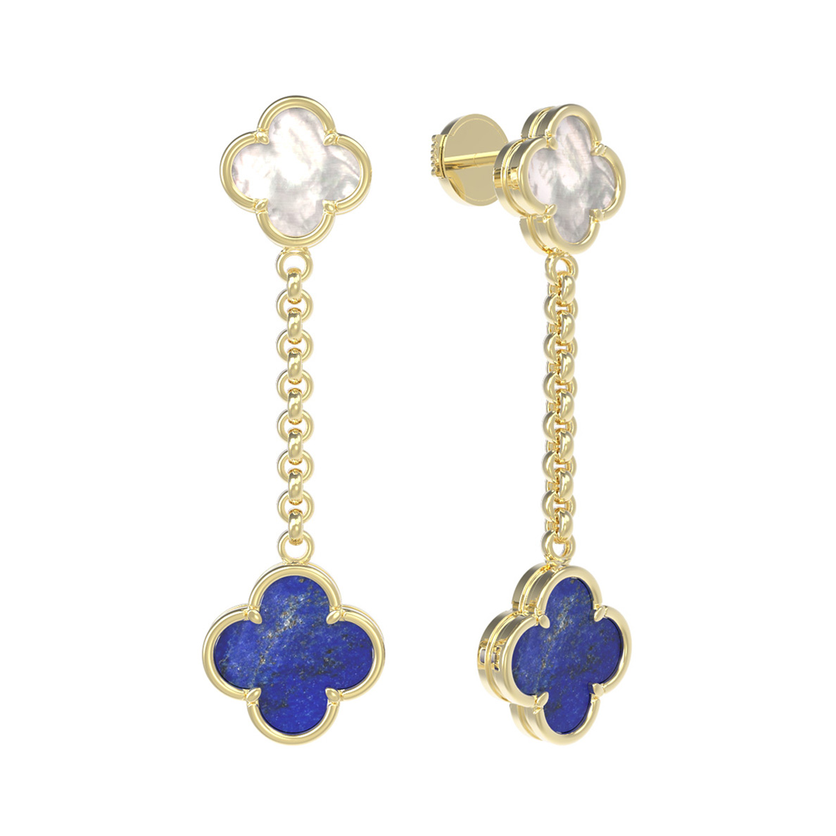 Изящные серьги из коллекции De Luxe — Клевер весна станут безупречным дополнением вашего образа, подчеркивая утонченный вкус и внимание к деталям. Это украшение выполнено из лимонного золота 585 пробы, чей теплый, солнечный оттенок идеально гармонирует с глубоким синим цветом лазурита и нежным сиянием перламутра. Дизайн в форме клевера придает изделию особое очарование, превращая его в символ удачи и гармонии.
