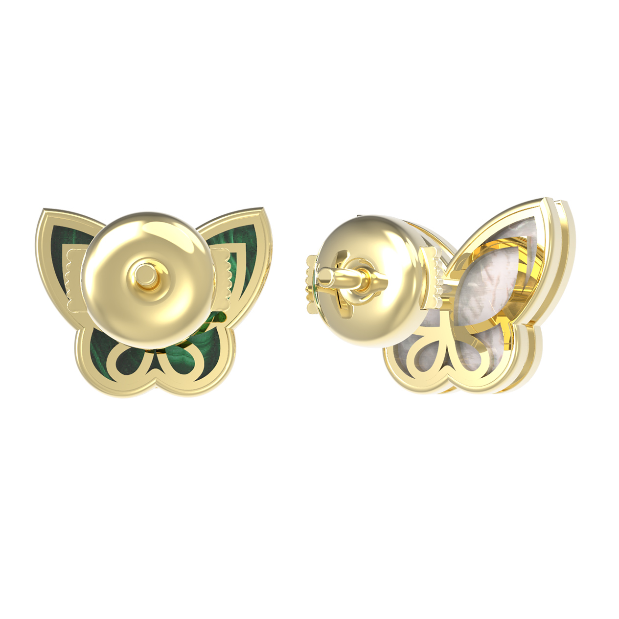 Серьги из лимонного золота c малахитом и перламутром