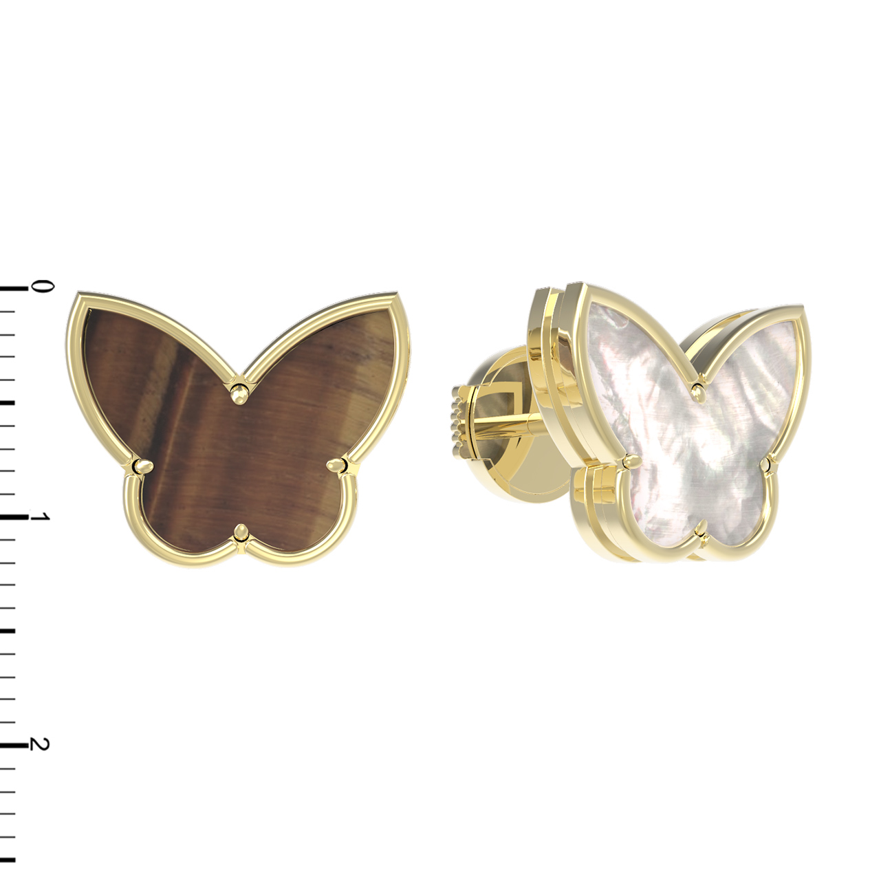 Серьги из лимонного золота c тигровым глазом и перламутром