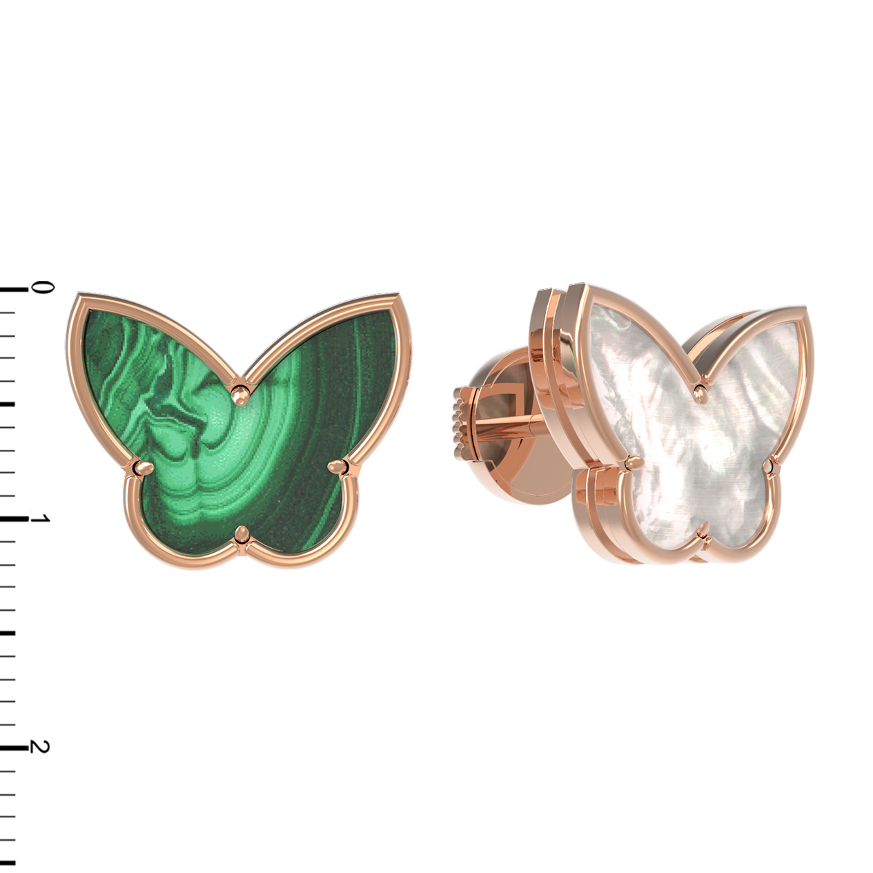 Откройте для себя воплощение изящества с этими серьгами из золота, которые станут ключевым акцентом вашего образа. Ювелирное изделие выполнено из красного золота 585 пробы, чей теплый оттенок идеально гармонирует с природной красотой камней. Дизайн украшения вдохновлен эстетикой клевера, однако придает ему особую легкость и воздушность, напоминая о пробуждении природы. Оригинальность модели заключается в контрастном сочетании вставок: насыщенный зеленый малахит с его уникальным природным рисунком соседствует с нежным мерцающим перламутром. Такая игра текстур и оттенков притягивает взгляды и подчеркивает утонченный вкус владелицы.