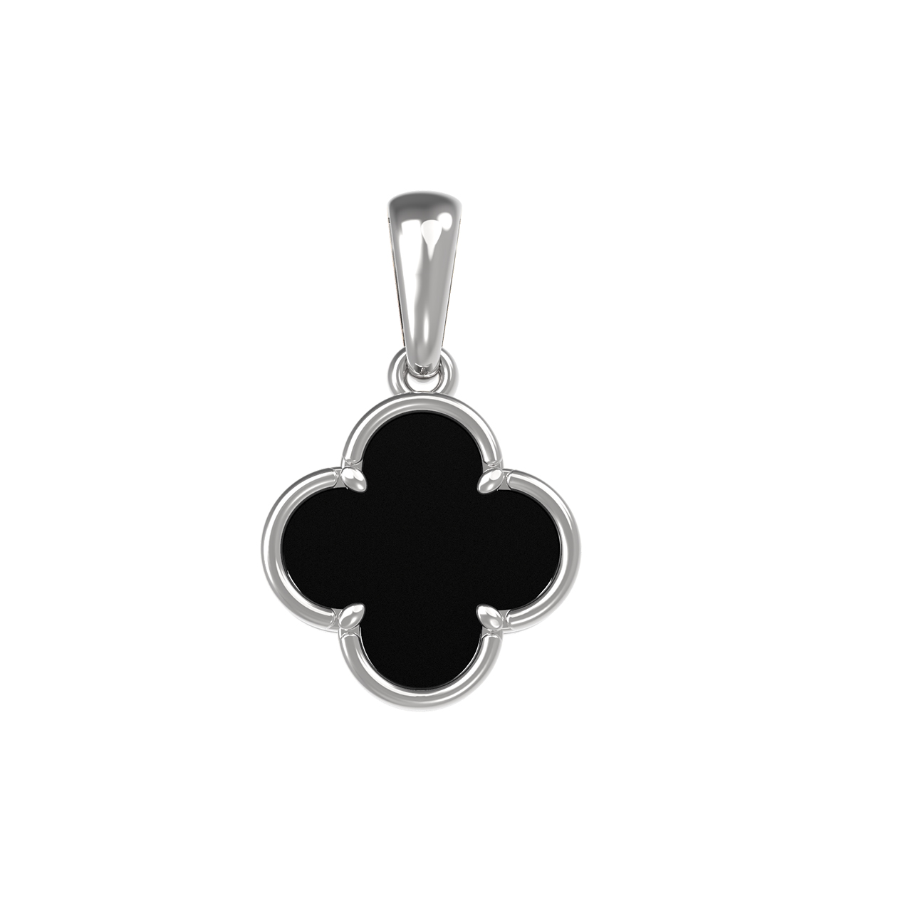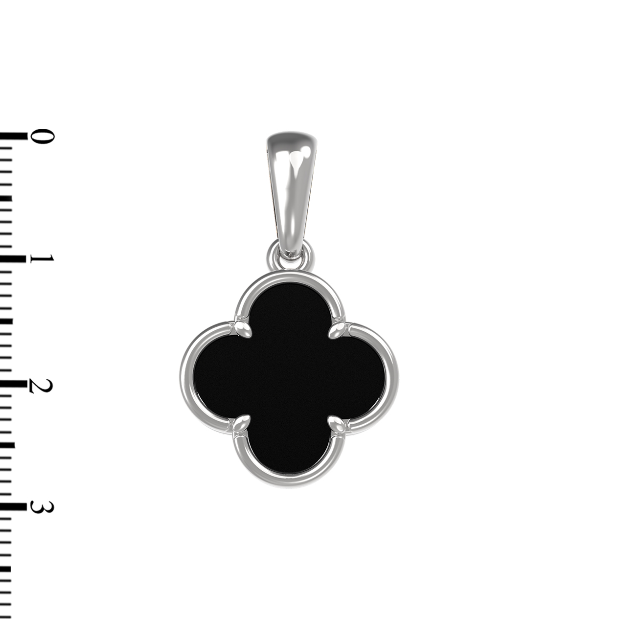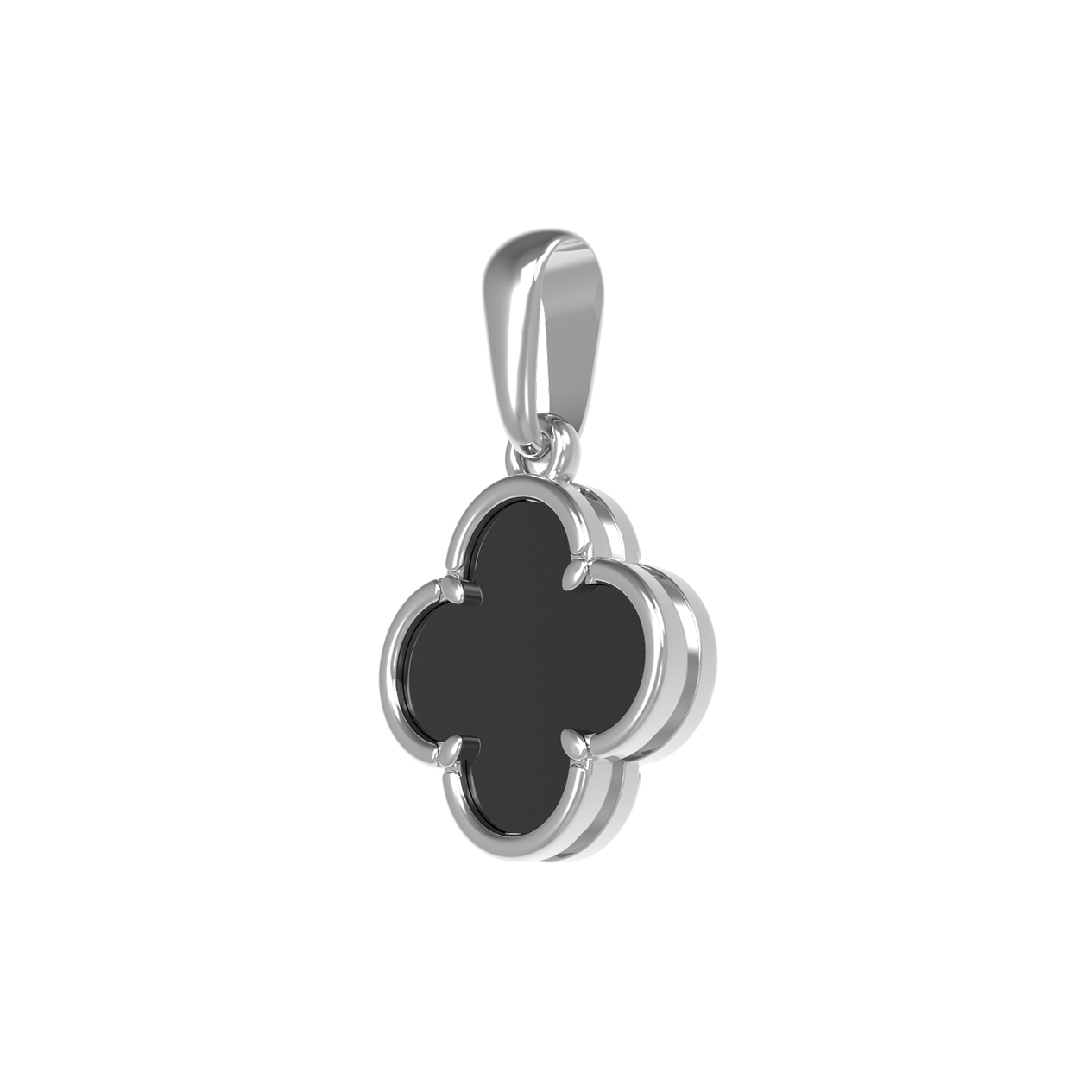 Элегантная подвеска из белого золота 585 пробы станет утонченным дополнением вашего образа. Украшение выполнено в узнаваемом дизайне — клевер, который символизирует удачу и гармонию. Контрастное сочетание холодного блеска белого золота и глубокого цвета вставки — черного оникса — создает выразительный акцент, притягивающий взгляды. В центре композиции расположена одна вставка оникса, подчеркнутая аккуратной оправой.