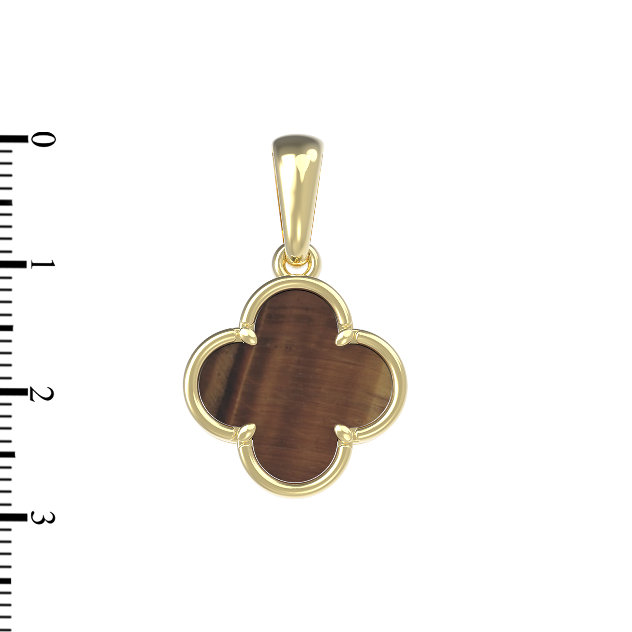 Подвеска из лимонного золота 585 пробы — это изысканное ювелирное украшение, которое станет акцентом вашего образа. Дизайн изделия выполнен в форме нежного клевера, что придает украшению особое очарование и символичность. Центральным элементом композиции является вставка из натурального тигрового глаза. Этот камень насыщенного оранжевого цвета обладает уникальным переливом, который идеально гармонирует с теплым сиянием лимонного золота.